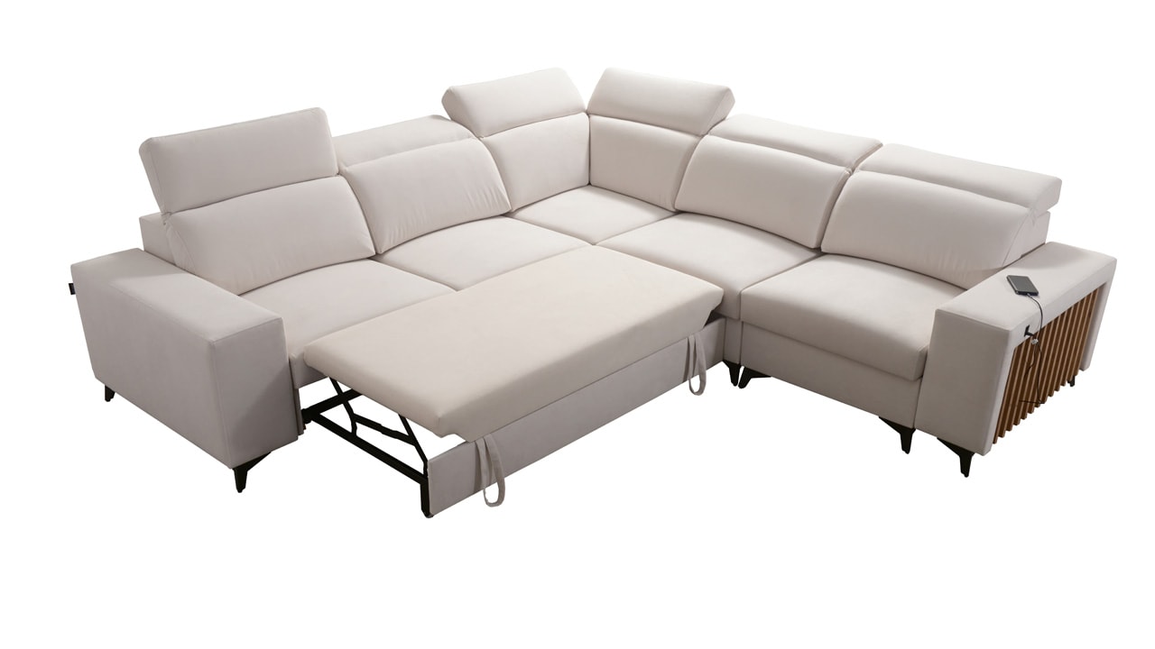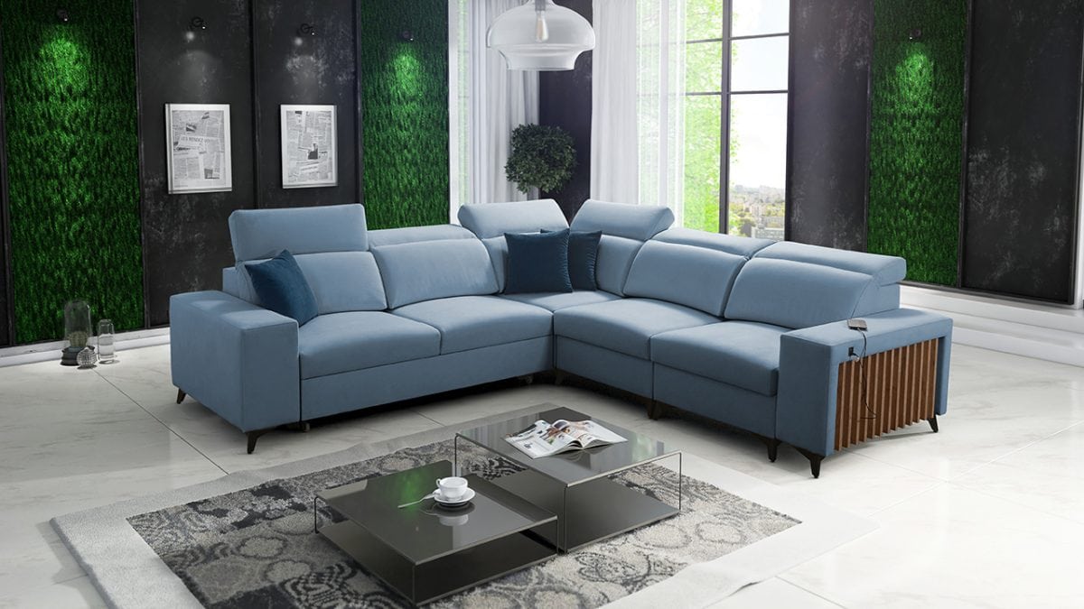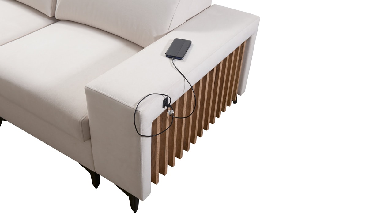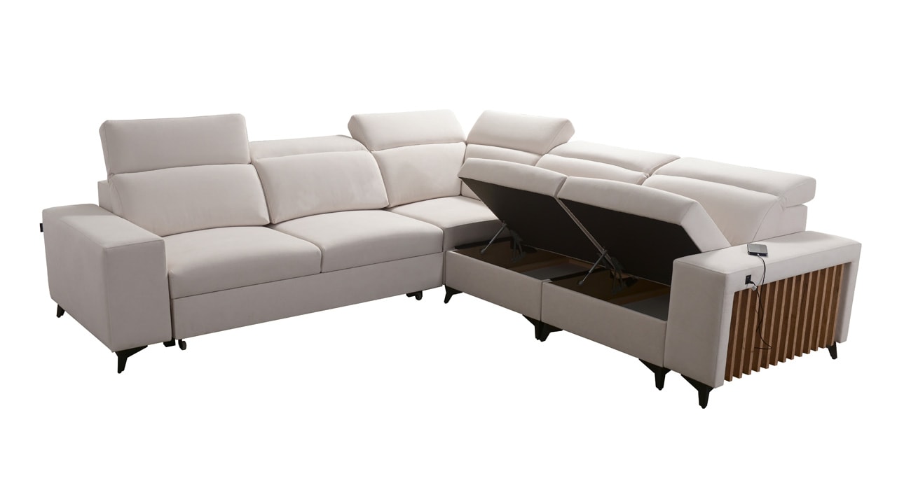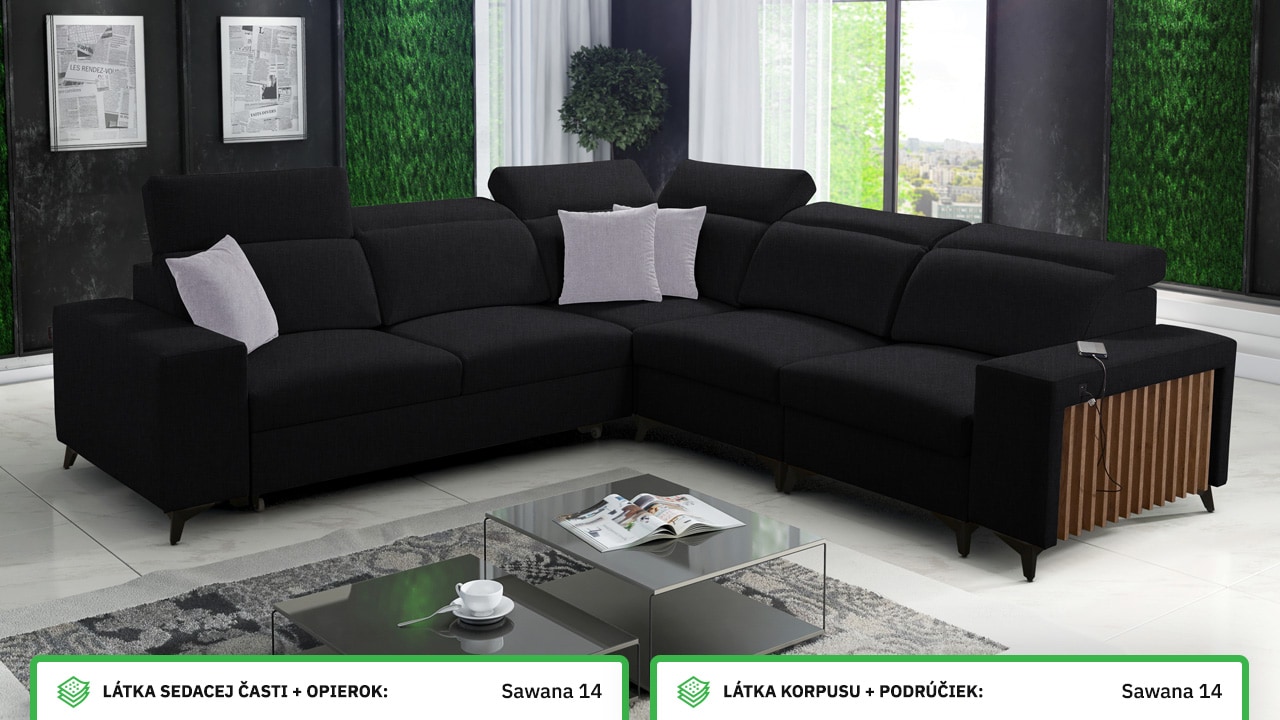 Hľadáte zaujímavý dizajnový kúsok do obývačky či kancelárie? Táto sedacia súprava s jedinečným dizajnom zaujme oko každého hosťa. Je zaujímavá svojím dreveným prvkom, ktorý si môžete zvoliť v piatich farbách podľa vlastného výberu. Okrem toho je sedačka veľmi praktická a pohodlná. Má polohovateľné opierky hlavy, úložný priestor, USB porty a možnosť rozloženia. Farbu poťahu si tiež môžete zvoliť sami.