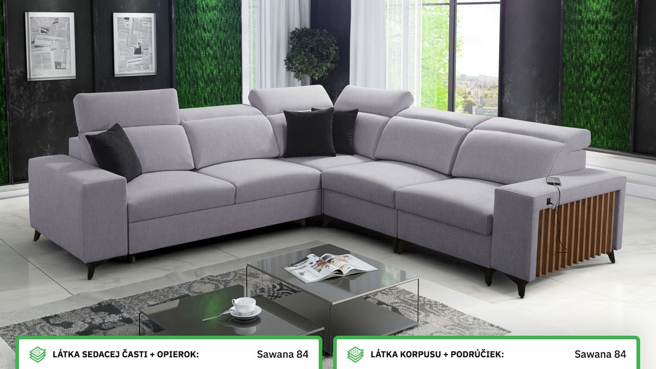 V našom konfigurátore si veľmi jednoducho nadizajnujete vašu novú sedačku. Najprv vás čaká výber rohu, a potom si zvolíte požadovanú poťahovú látku sedacej časti a korpusu. V posledných krokoch si vyberáte vzor vankúšov, typ doplnkov a nožičiek. Celý konfigurátor je dostatočne prehľadný, aby ste si svoju novú sedaciu súpravu navrhli presne podľa vašich predstáv.