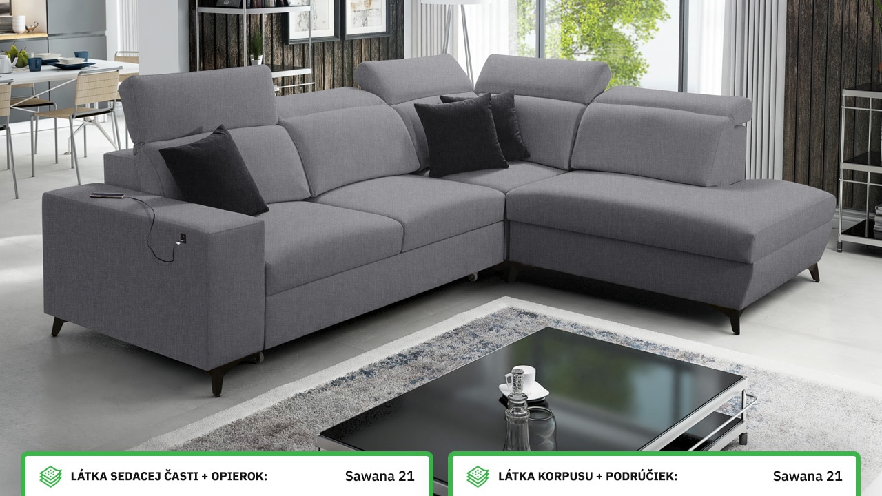 V našom konfigurátore si veľmi jednoducho nadizajnujete vašu novú sedačku. Najprv vás čaká výber rohu, a potom si zvolíte požadovanú poťahovú látku sedacej časti a korpusu. V posledných krokoch si vyberáte vzor vankúšov, typ doplnkov a nožičiek. Celý konfigurátor je dostatočne prehľadný, aby ste si svoju novú sedaciu súpravu navrhli presne podľa vašich predstáv.