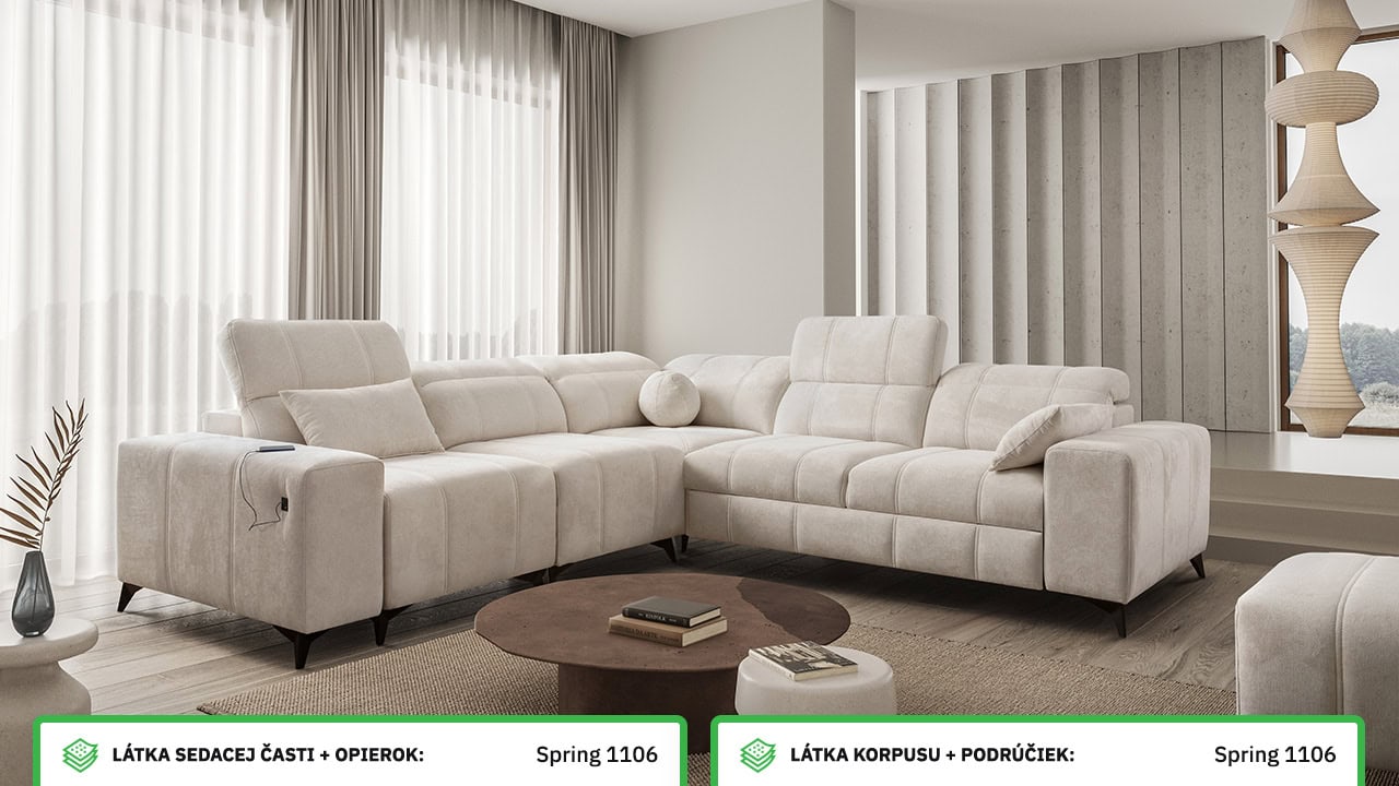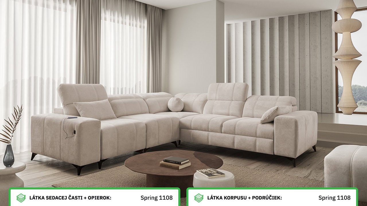 V našom konfigurátore si veľmi jednoducho nadizajnujete vašu novú sedačku. Najprv vás čaká výber rohu, a potom si zvolíte požadovanú poťahovú látku sedacej časti a korpusu. V posledných krokoch si vyberáte vzor vankúšov, typ doplnkov a nožičiek. Celý konfigurátor je dostatočne prehľadný, aby ste si svoju novú sedaciu súpravu navrhli presne podľa vašich predstáv.