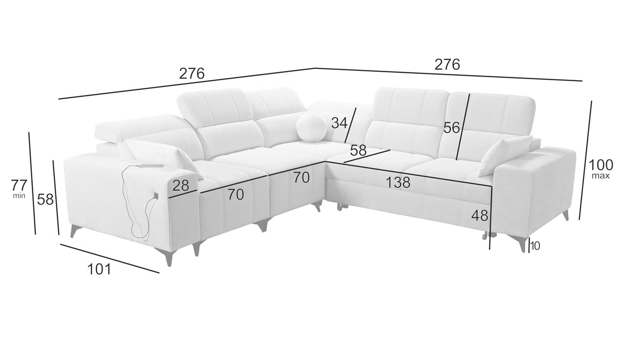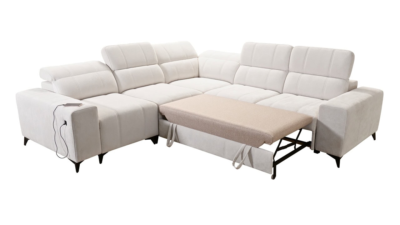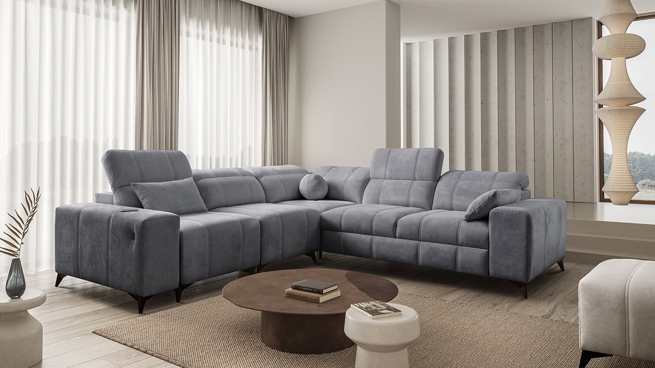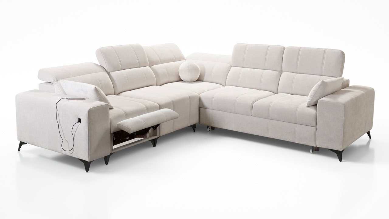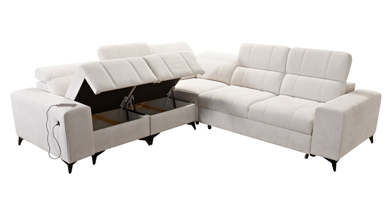 Elegantná rohová sedačka Daffy III s hladkými líniami a moderným dizajnom vynikne v každej obývačke. Je vhodná pre tých, ktorí hľadajú sedačku s rovnako dlhými ramenami. Rozkladanie vám poskytne pohodlné miesto, kde uložíte hosťa. Úložný priestor zas ponúka možnosť odložiť sezónne veci. Vďaka nastaviteľným opierkam hlavy a vyklápateľnej podnožke si sedenie prispôsobíte presne podľa vašich predstáv. Telefón, tablet či iné smart zariadenie si so zabudovanou nabíjacou stanicou nabijete z pohodlia gauča.