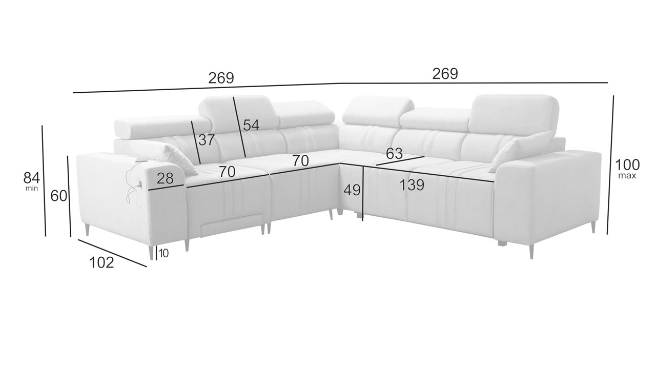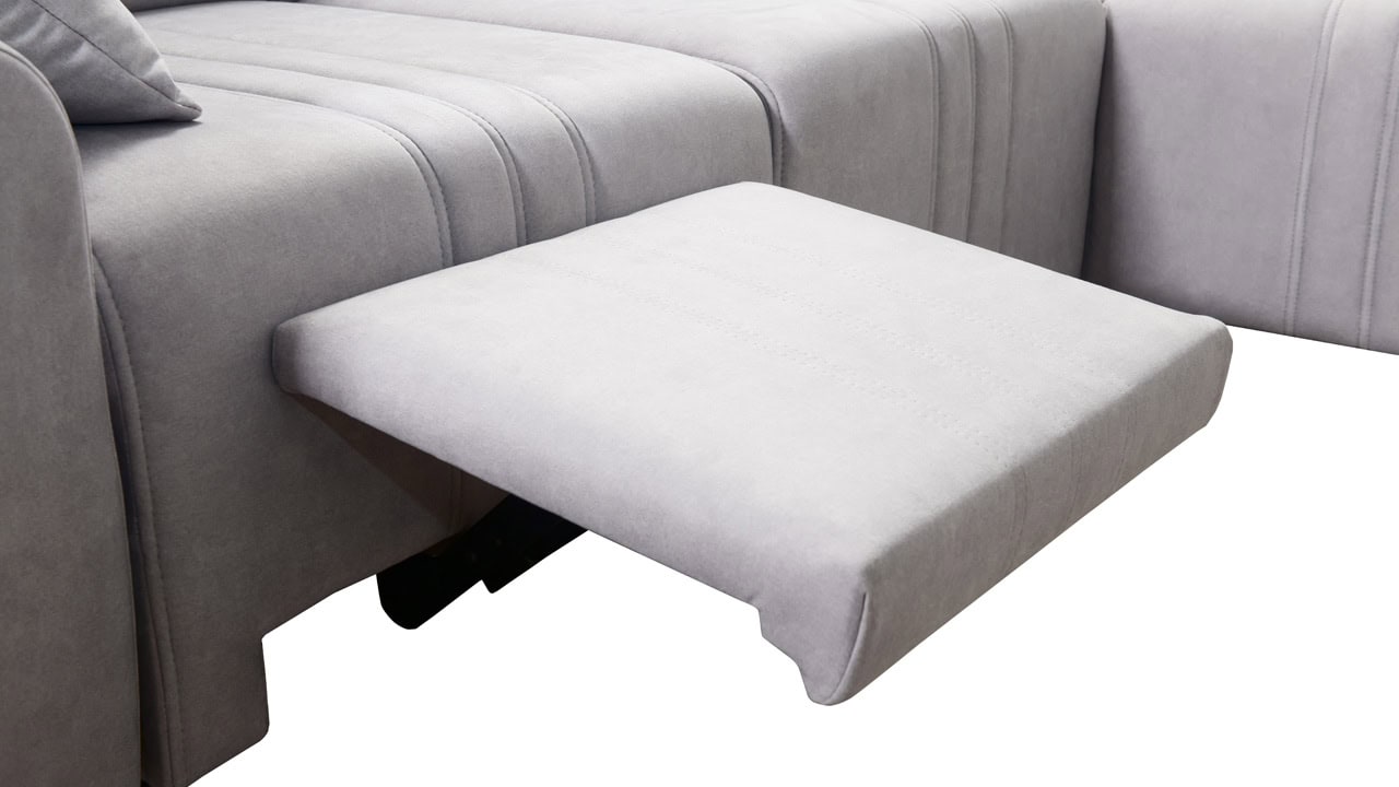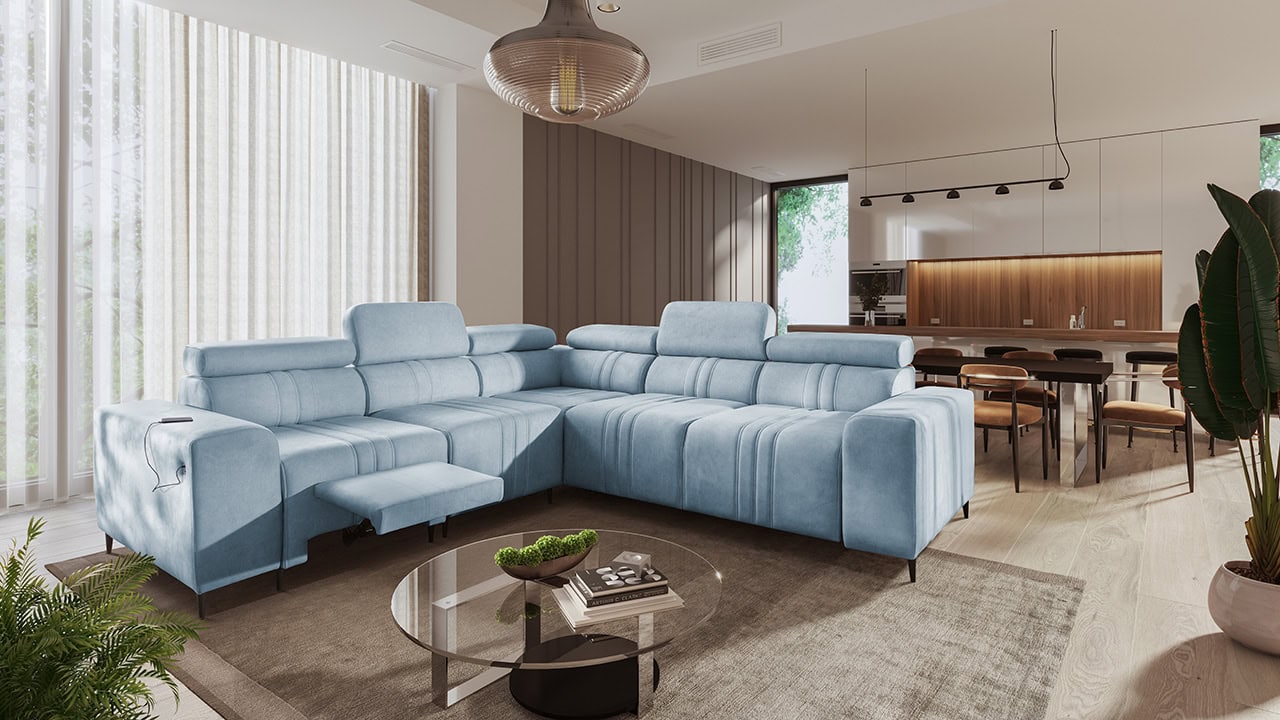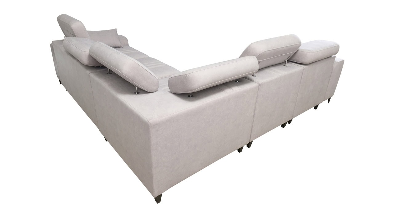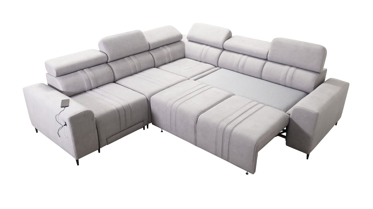Mohutne pôsobiaca rohová sedačka Fabio III vám poskytne maximálny komfort. Je vybavená opierkami hlavy, nabíjacím USB portom a funkciou rozkladania. Môžete si ju vybrať buď vo variante s úložným priestorom alebo s opierkami na nohy. Krásne vynikne v akýchkoľvek farbách – svetlých krémových či béžových, tmavých sivých a hnedých, ale aj vo výraznejších farebných odtieňoch ružovej, zelenej či žltej. Vybrať si na ňu môžete akýkoľvek poťah z nášho vzorkovníka.