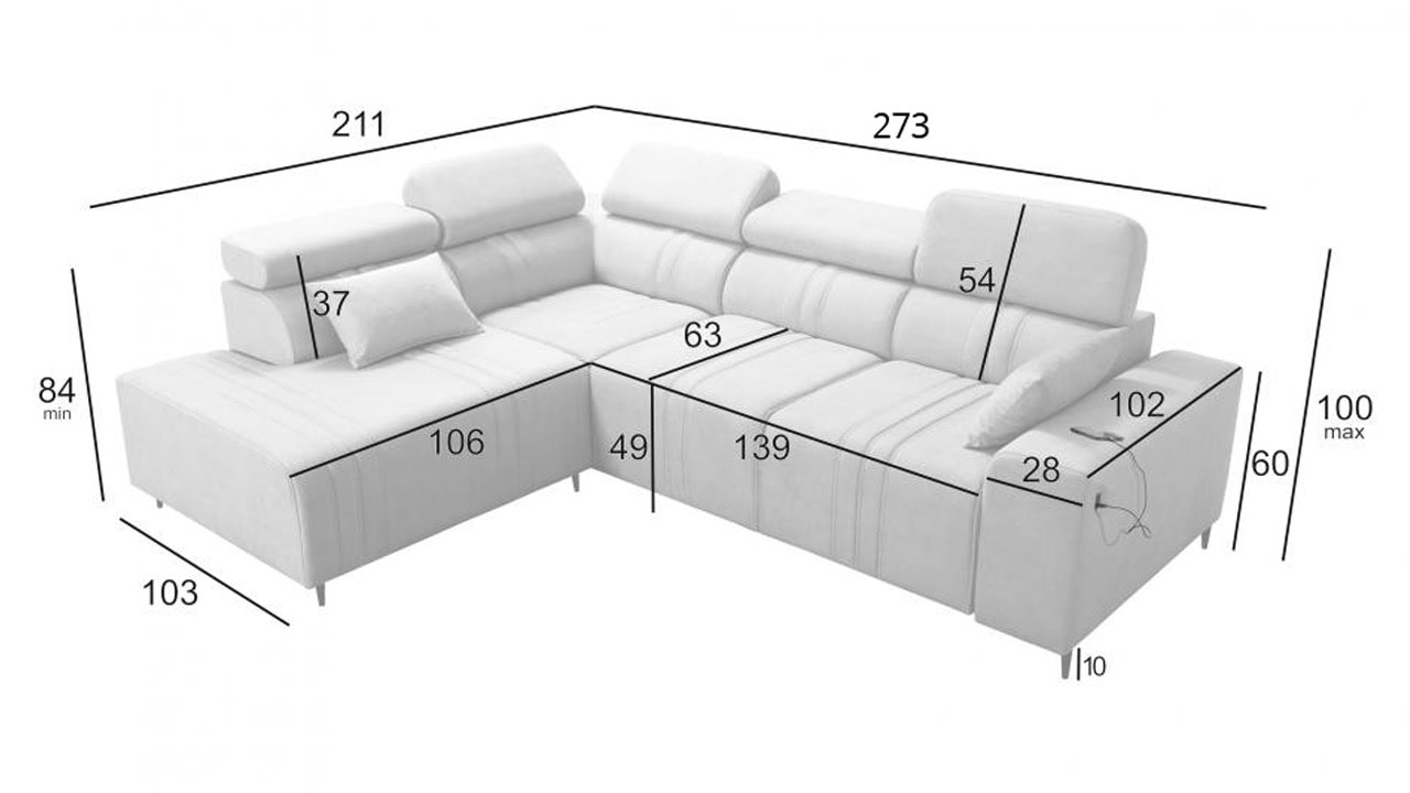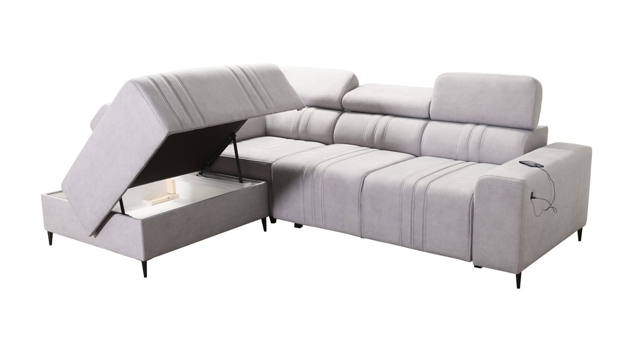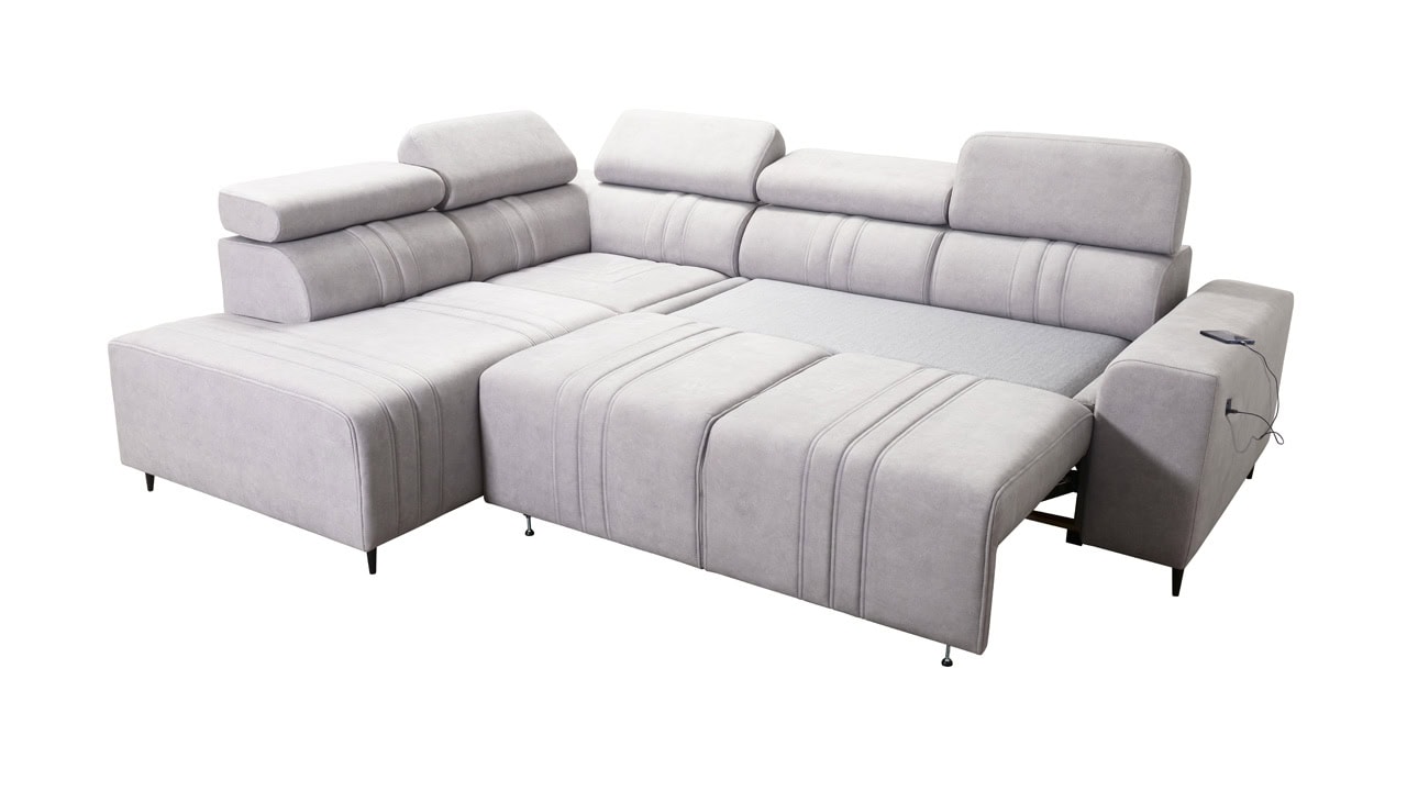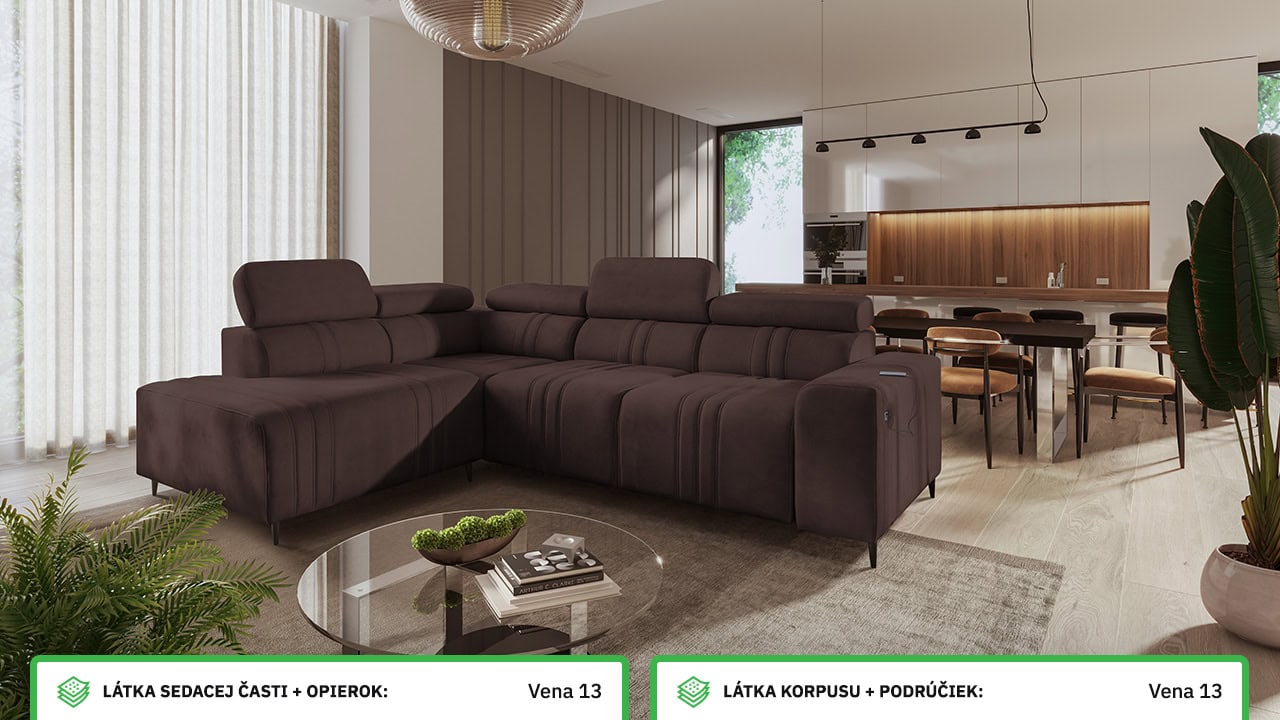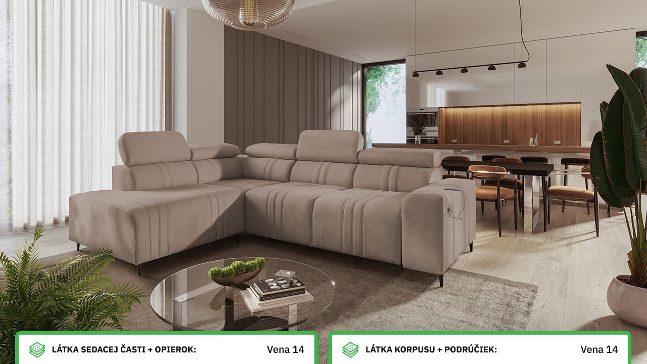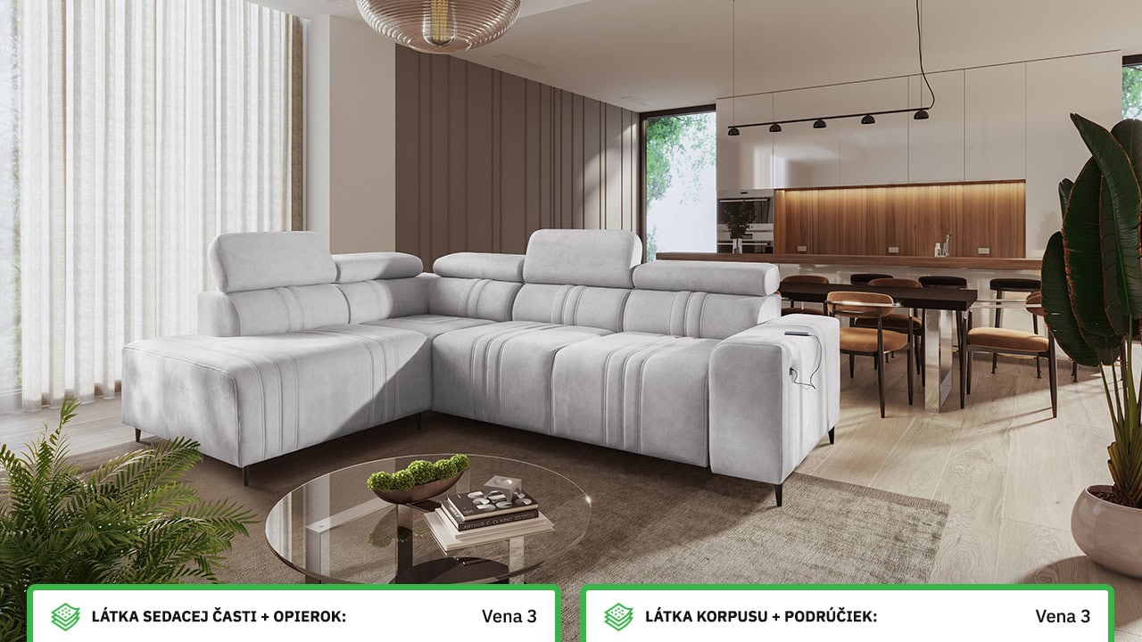 Elegantná a pohodlná rohová sedačka, ktorá je vďaka svojmu zaujímavému dizajnu vhodná do bytov aj kancelárií. Typ a farbu poťahu si môžete zvoliť podľa vlastných preferencií, vďaka čomu ju ľahko zladíte aj k už existujúcemu nábytku. Sedačka má mierne vyvýšené nožičky, polohovateľné opierky hlavy, nabíjaciu USB stanicu, menší úložný priestor a dá sa rozložiť na pohodlné dvojlôžko. Stačí si už len vybrať farbu a môže byť aj vaša.