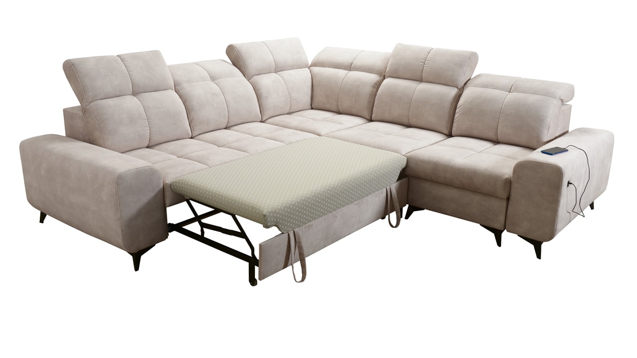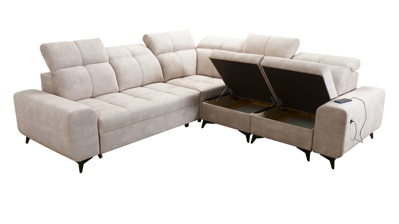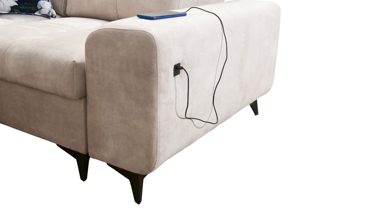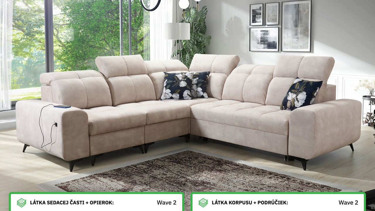 Moderná, elegantná, pohodlná a praktická – rohová sedačka GOLD III má všetko, čo od novej sedačky očakávate. Dá sa rozložiť, má úložný priestor a opierky hlavy si môžete nastaviť podľa vášho pohodlia. Do jedného jej krídla sme navyše ukryli nenápadnú nabíjaciu stanicu na USB port, takže si mobil či tablet môžete nabiť priamo zo sedačky. Stačí si už len vybrať poťahovú látku zo vzorkovníka a my vám sedačku vyrobíme presne podľa vašich predstáv. Sedačku nie je možné vyrobiť v poťahoch Erie, Bristol a Bahama.