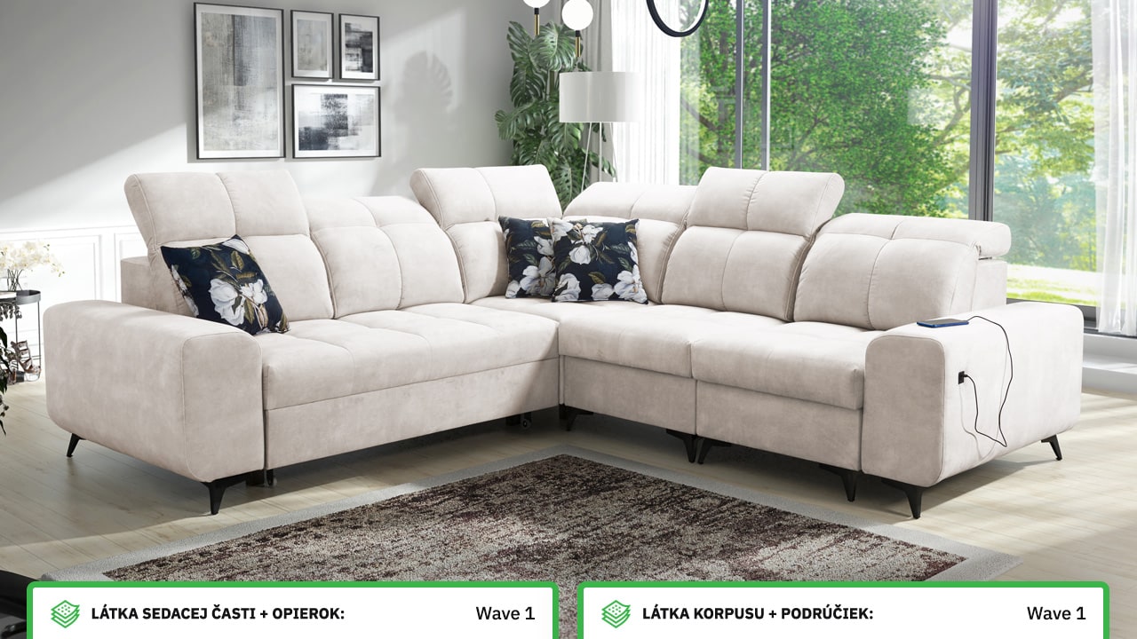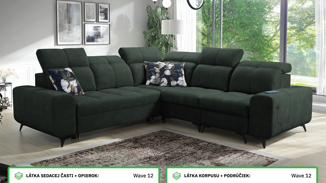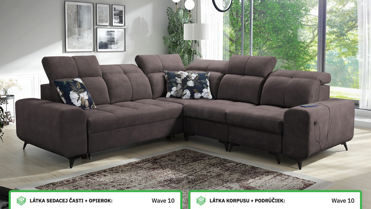 V našom konfigurátore si veľmi jednoducho nadizajnujete vašu novú sedačku. Najprv vás čaká výber rohu, a potom si zvolíte požadovanú poťahovú látku sedacej časti a korpusu. V posledných krokoch si vyberáte vzor vankúšov, typ doplnkov a nožičiek. Celý konfigurátor je dostatočne prehľadný, aby ste si svoju novú sedaciu súpravu navrhli presne podľa vašich predstáv.