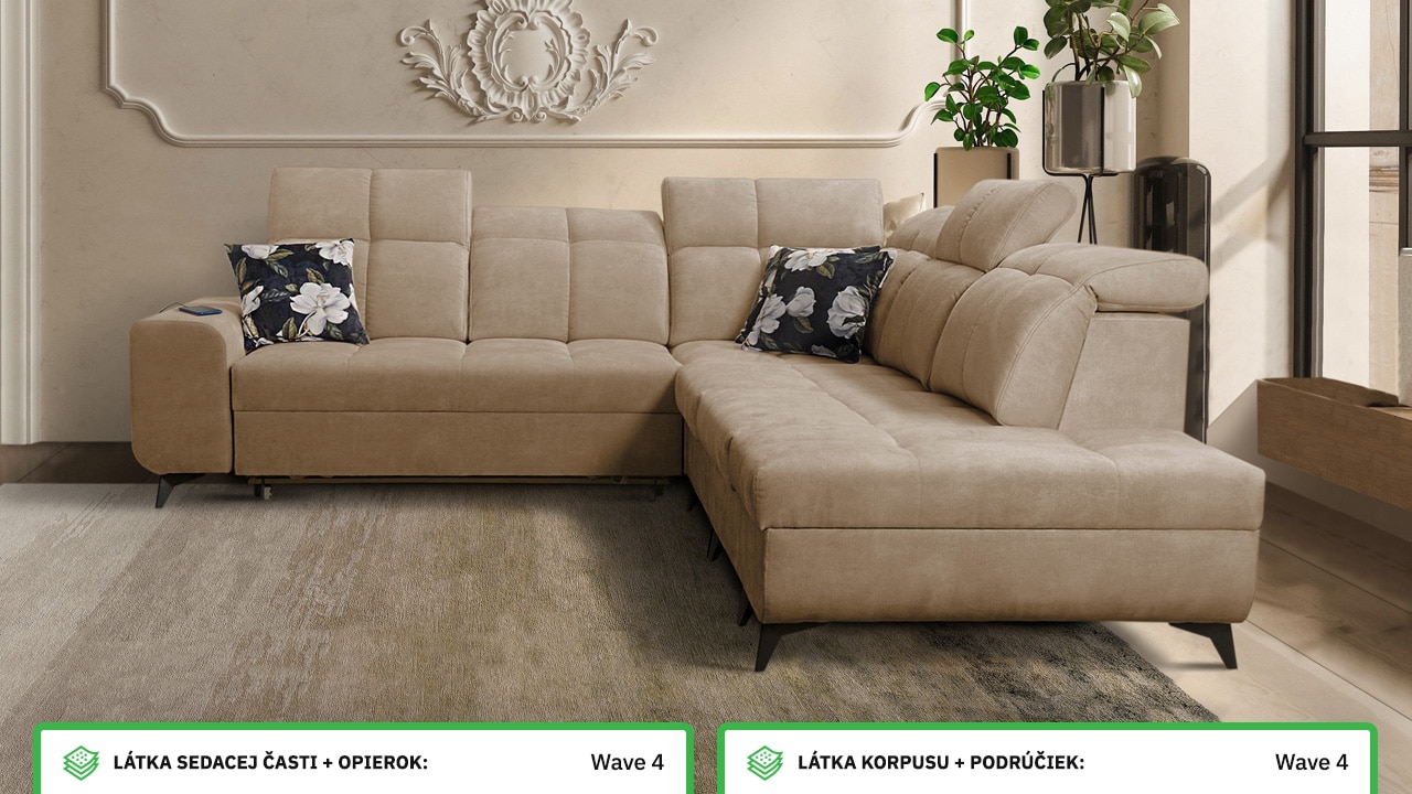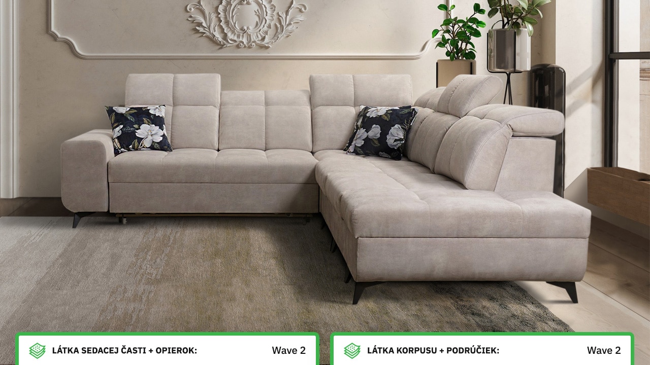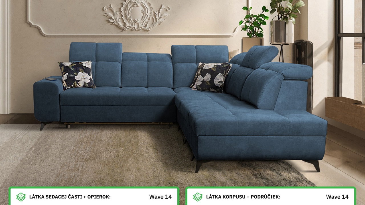 V našom konfigurátore si veľmi jednoducho nadizajnujete vašu novú sedačku. Najprv vás čaká výber rohu, a potom si zvolíte požadovanú poťahovú látku sedacej časti a korpusu. V posledných krokoch si vyberáte vzor vankúšov, typ doplnkov a nožičiek. Celý konfigurátor je dostatočne prehľadný, aby ste si svoju novú sedaciu súpravu navrhli presne podľa vašich predstáv.
