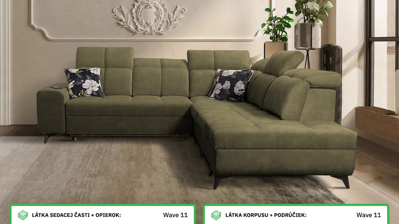 • Vyberte si vzor dekoratívnych vankúšov, ktoré zabalíme k pohovke zadarmo.