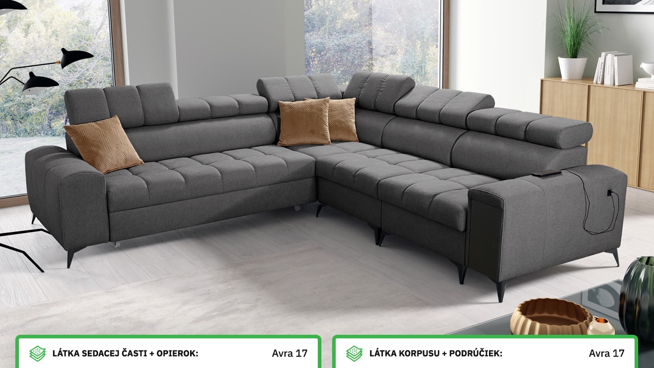 V našom konfigurátore si veľmi jednoducho nadizajnujete vašu novú sedačku. Najprv vás čaká výber rohu, a potom si zvolíte požadovanú poťahovú látku sedacej časti a korpusu. V posledných krokoch si vyberáte vzor vankúšov, typ doplnkov a nožičiek. Celý konfigurátor je dostatočne prehľadný, aby ste si svoju novú sedaciu súpravu navrhli presne podľa vašich predstáv.