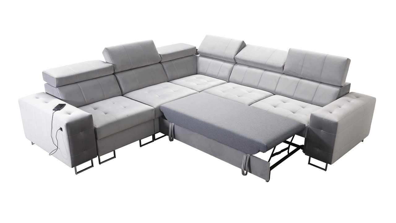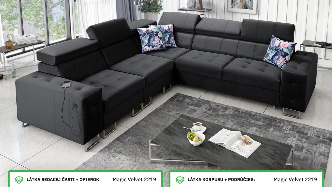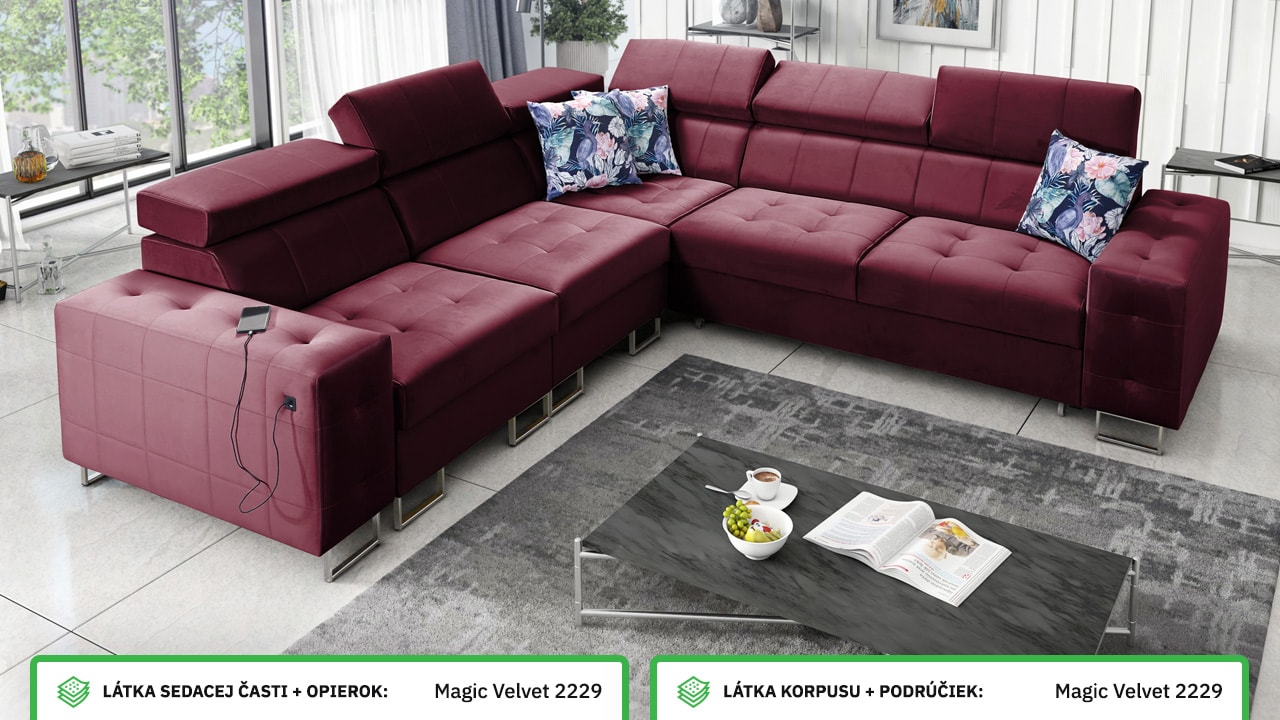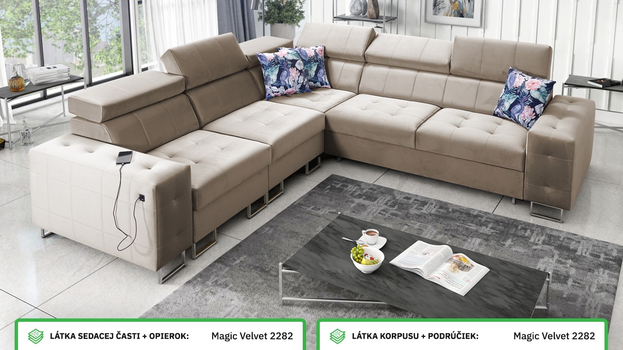 Rohová sedačka, ktorá spája štýl, pohodlie a praktickosť. Má elegantný, ale stále veľmi funkčný dizajn. Príjemne sa na nej sedí a je vybavená polohovateľnými opierkami hlavy. Jednoducho sa dá rozložiť na pohodlné dvojlôžko, čo oceníte pri návštevách. Okrem toho udrží vašu obývačku upratanú a usporiadanú vďaka integrovanému úložnému priestoru. Nechajte si ju vyrobiť vo farbe podľa seba a užite si na nej príjemný relax.