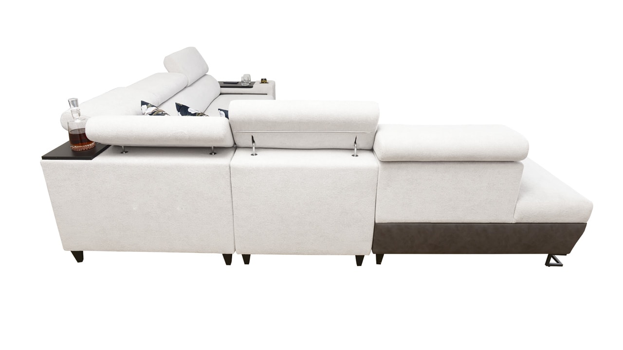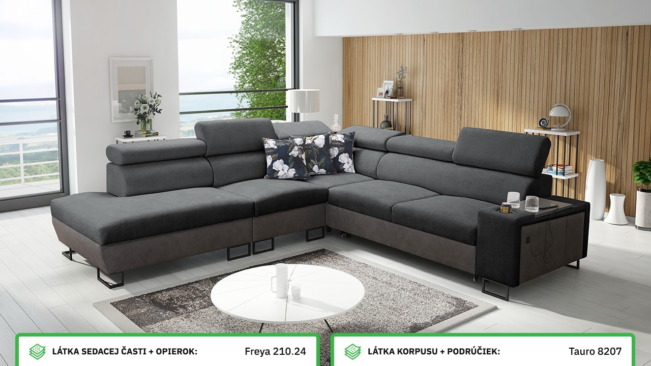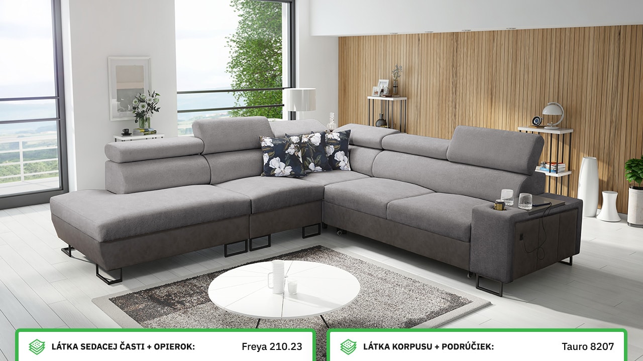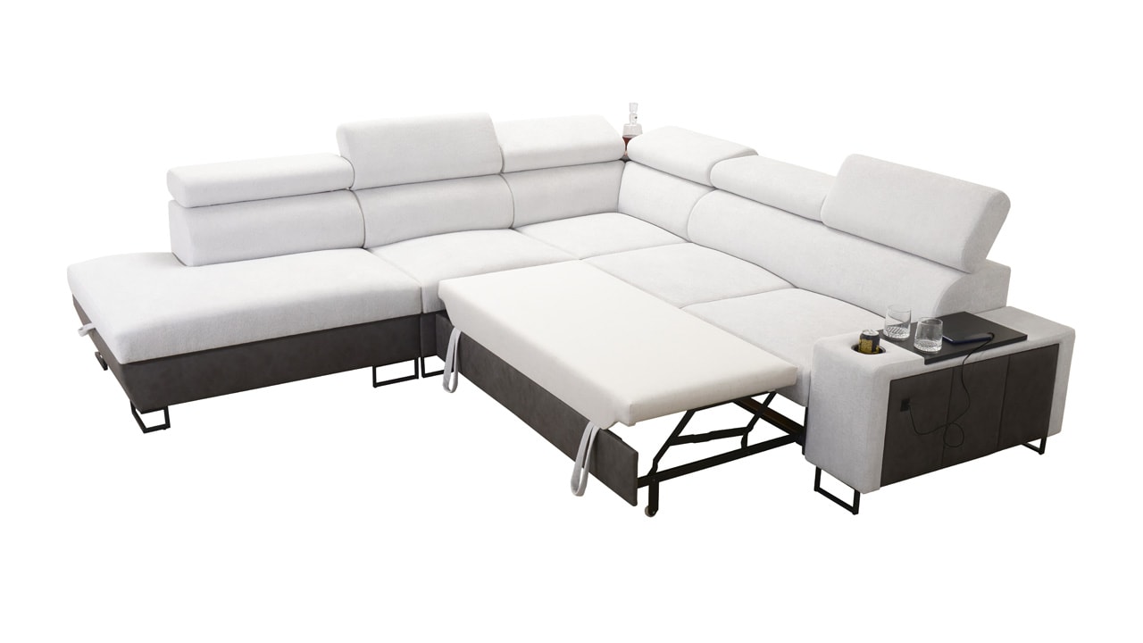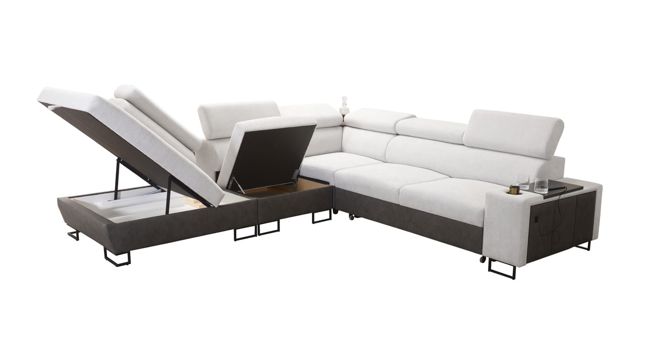 Veľká rohová sedačka pre vaše moderné bývanie. Je vybavená všetkým, čo by ste od sedačky mohli očakávať – dá sa rozložiť, ukrýva veľký úložný priestor, má nastaviteľné opierky hlavy, vstavaný minibar, držiak na pohár, a tiež zabudovanú USB nabíjačku pre nabitie mobilu alebo tabletu. Okrem toho je extra pohodlná, vďaka čomu sa stane dokonalým spoločníkom na dlhé večery pri filme či dobrej knihe.