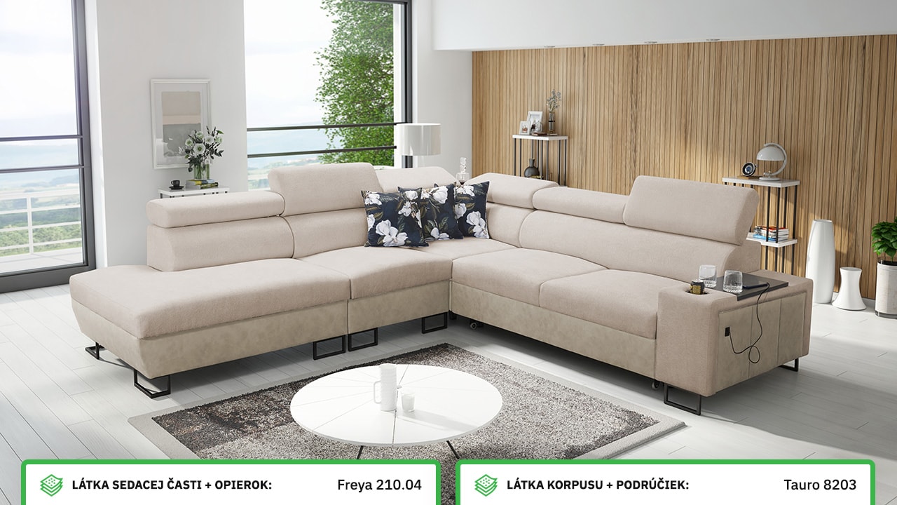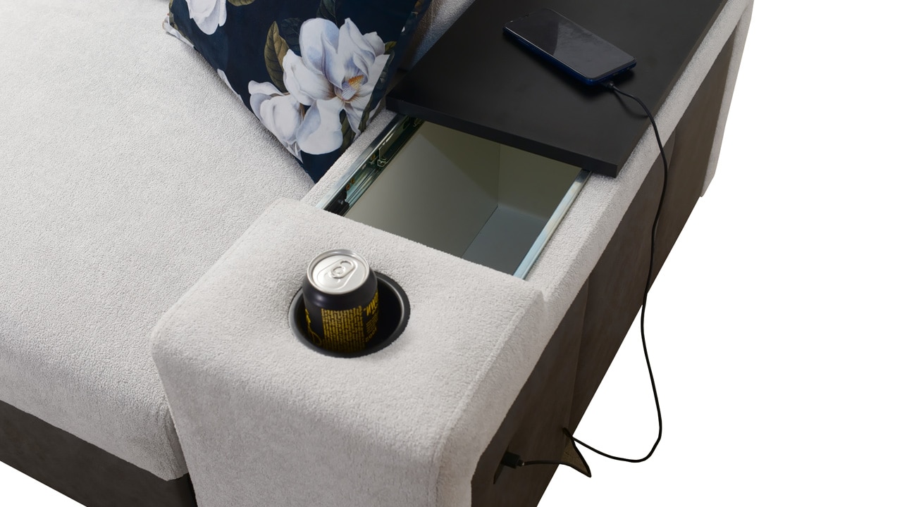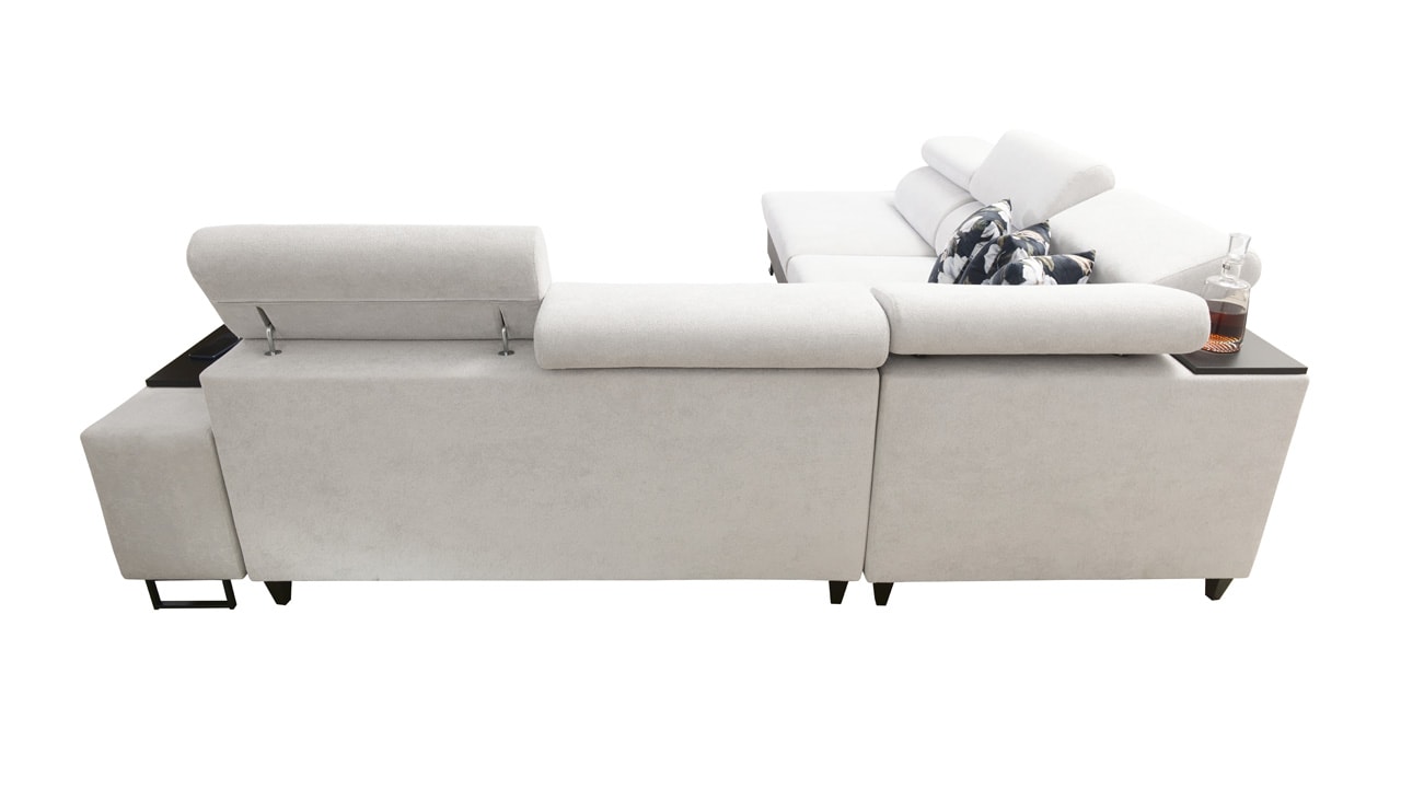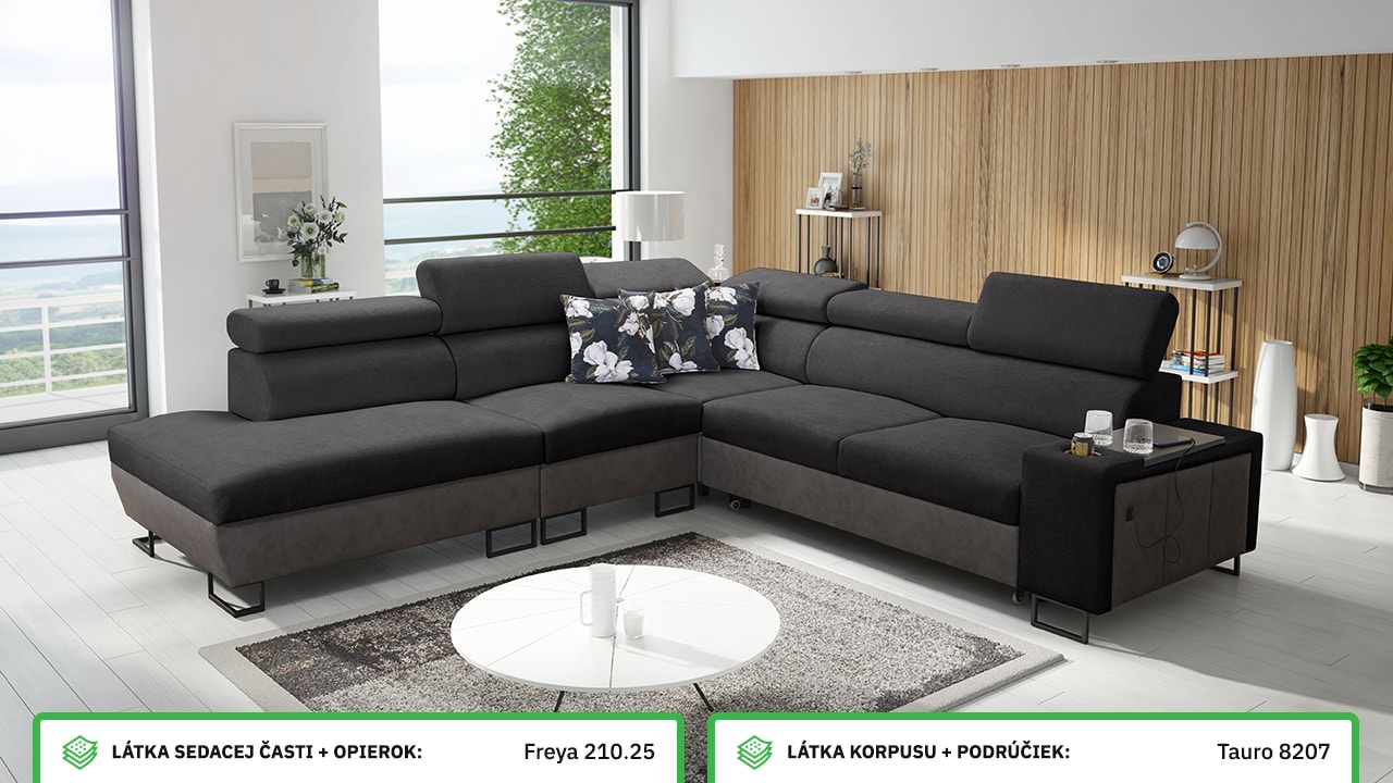 Veľká rohová sedačka pre vaše moderné bývanie. Je vybavená všetkým, čo by ste od sedačky mohli očakávať – dá sa rozložiť, ukrýva veľký úložný priestor, má nastaviteľné opierky hlavy, vstavaný minibar, držiak na pohár, a tiež zabudovanú USB nabíjačku pre nabitie mobilu alebo tabletu. Okrem toho je extra pohodlná, vďaka čomu sa stane dokonalým spoločníkom na dlhé večery pri filme či dobrej knihe.