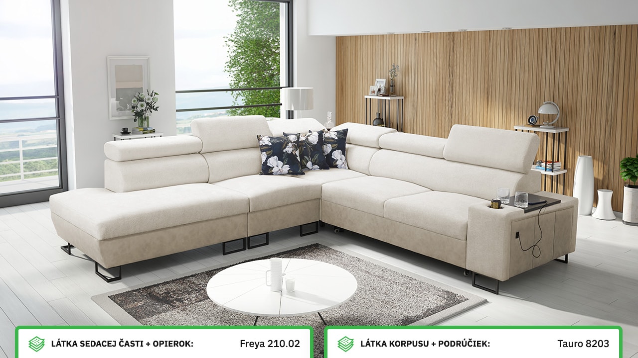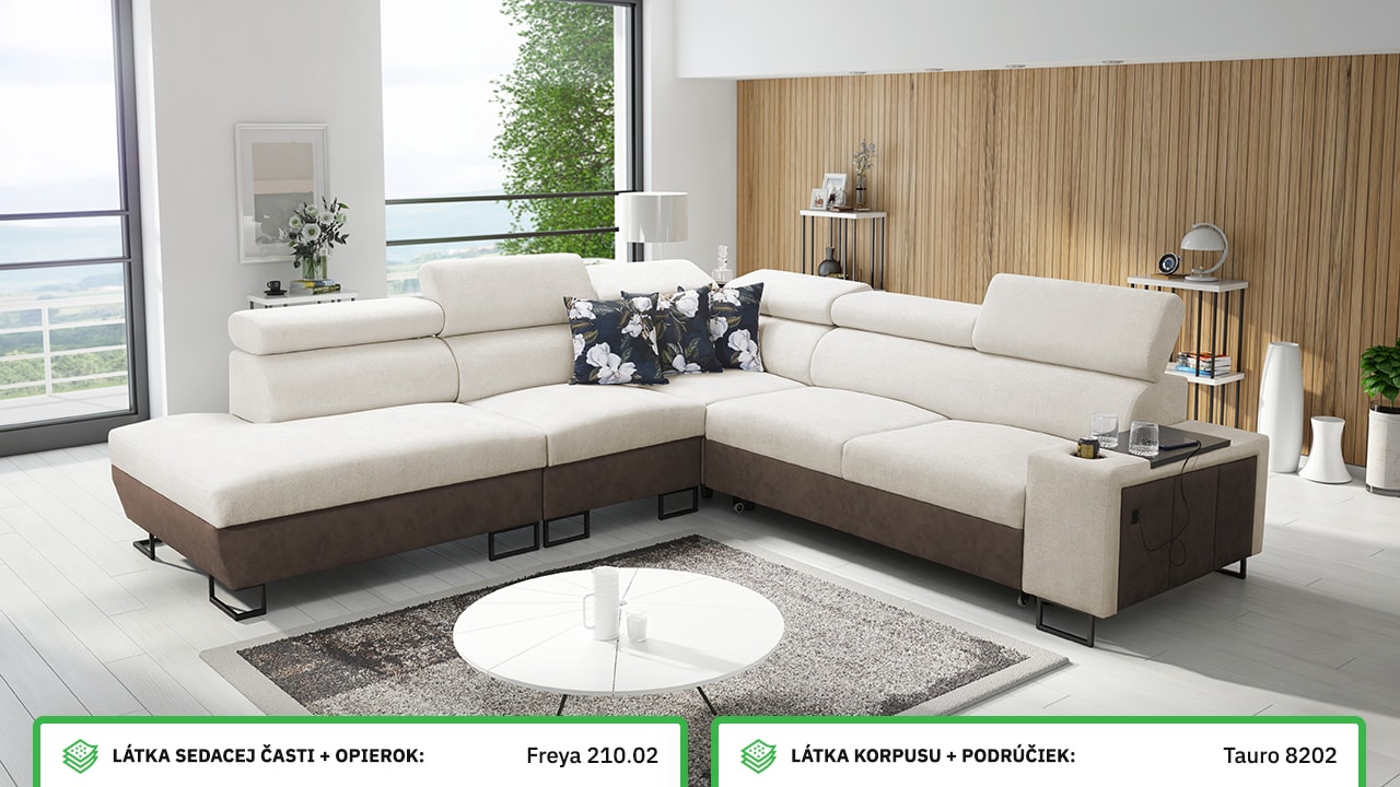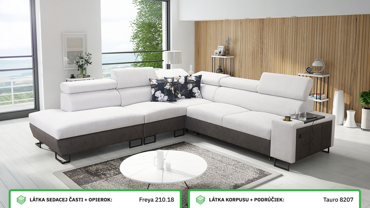 V našom konfigurátore si veľmi jednoducho nadizajnujete vašu novú sedačku. Najprv vás čaká výber rohu, a potom si zvolíte požadovanú poťahovú látku sedacej časti a korpusu. V posledných krokoch si vyberáte vzor vankúšov, typ doplnkov a nožičiek. Celý konfigurátor je dostatočne prehľadný, aby ste si svoju novú sedaciu súpravu navrhli presne podľa vašich predstáv.