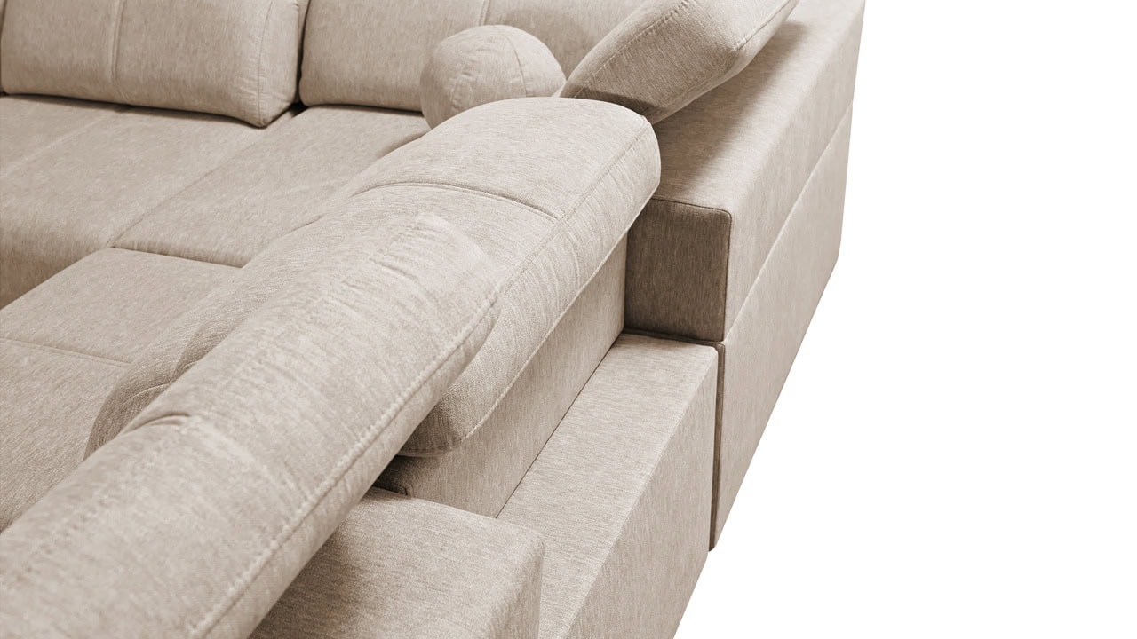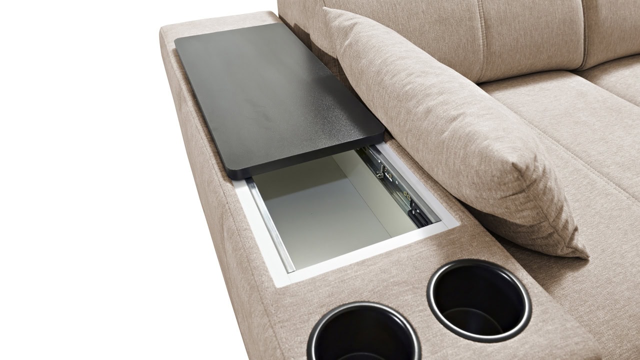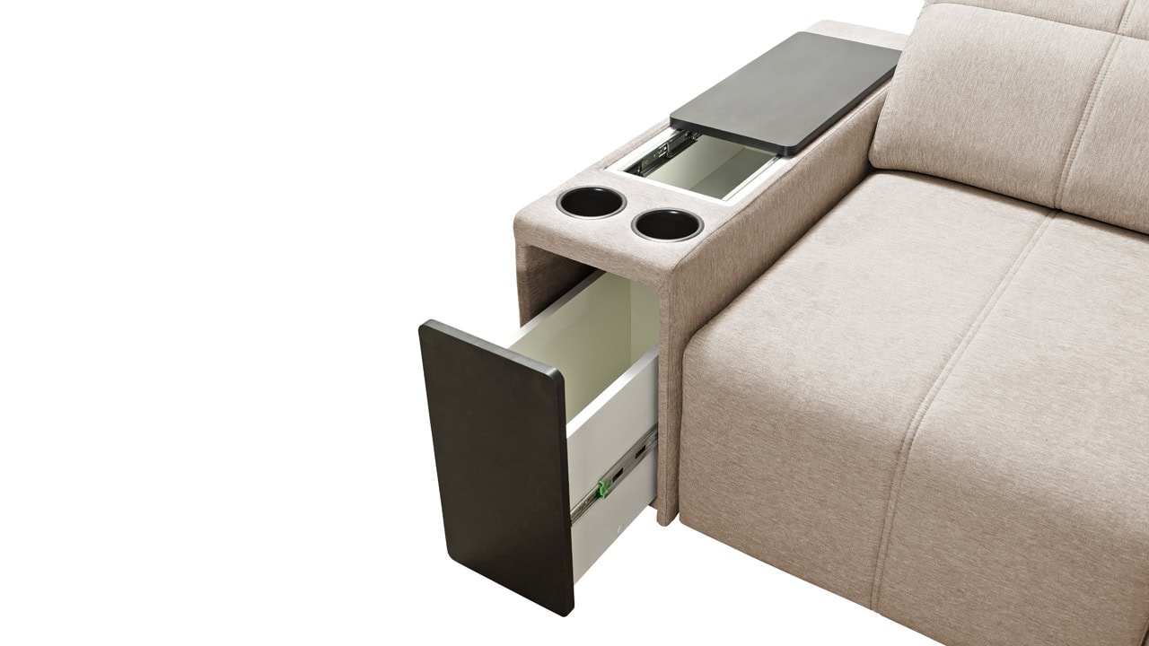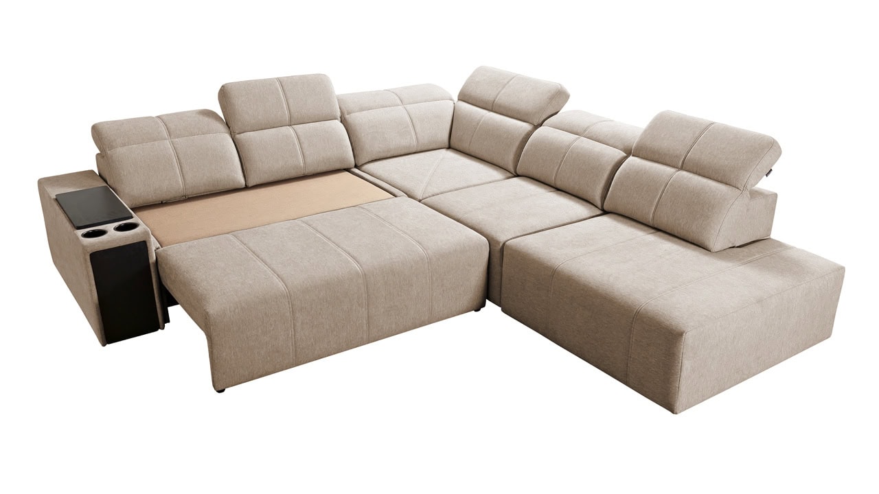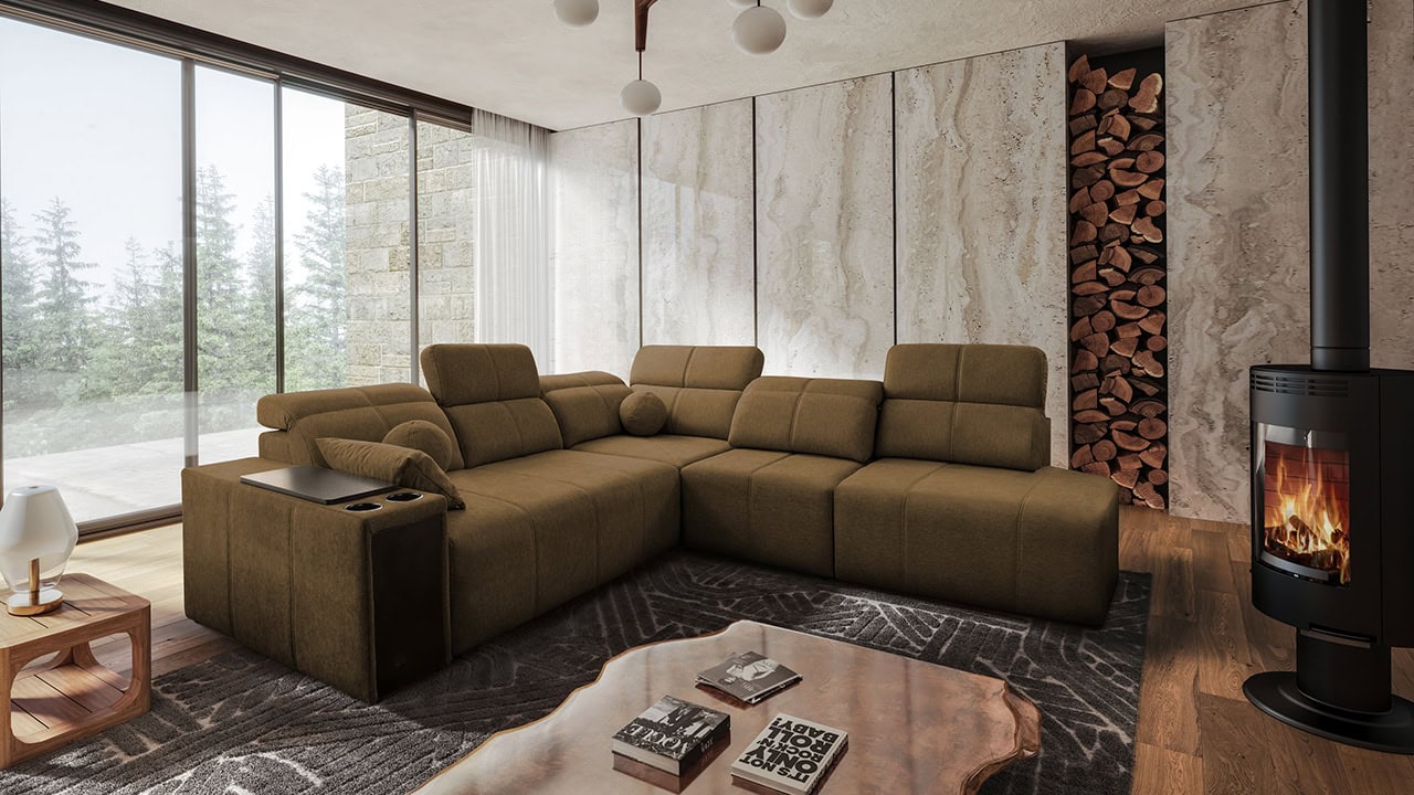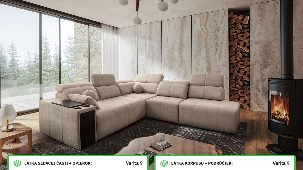 Rohová sedačka s jemnými líniami a kvalitným poťahom vám prinesie maximálny komfort. Ponúka štedrý priestor na sedenie. Polohovateľné opierky hlavy vám umožnia nastaviť si ideálnu pozíciu tela a čerešničku tomu celému dá posuvná chrbtová opierka. Usaďte sa, umiestnite do držiaka váš obľúbený nápoj, vytiahnite pochutiny z minibaru a ponorte sa do obľúbeného filmu, knihy či inej formy relaxu. Sedačka je vybavená aj vstavanou zásuvkou a nabíjacou stanicou pre vaše smart zariadenie.