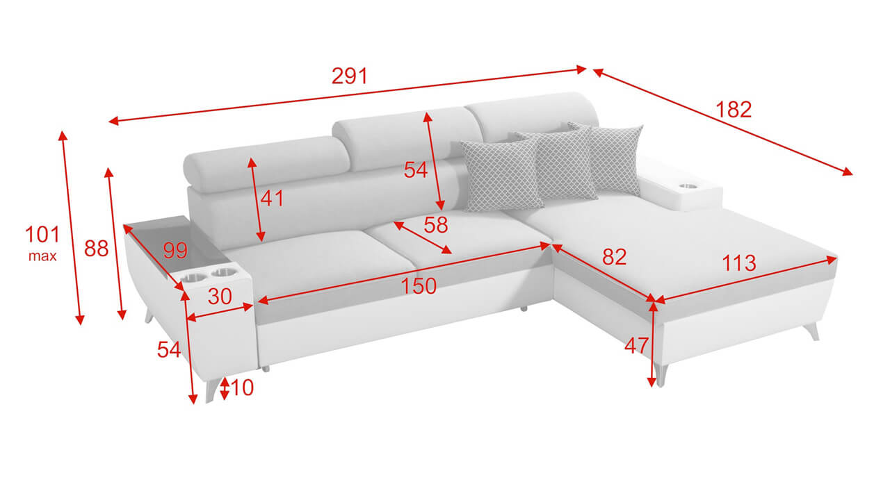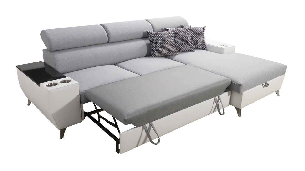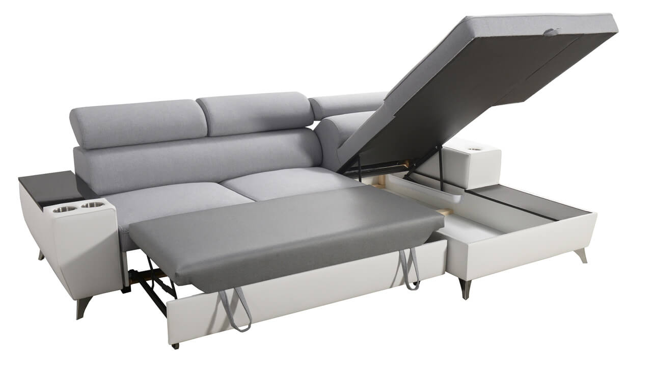 Rozkladacia rohová sedačka s úložným priestorom Modio I Maxi bola vytvorená pre ľudí, ktorí od sedačky vyžadujú najmä pohodlnosť. Má nastaviteľné opierky hlavy, držiaky na poháre po oboch stranách sedačky, vstavaný minibar a pevné sedenie, ktoré sa ani časom nevysedí. Vankúše vám k sedačke dáme zdarma.