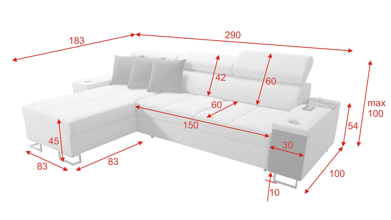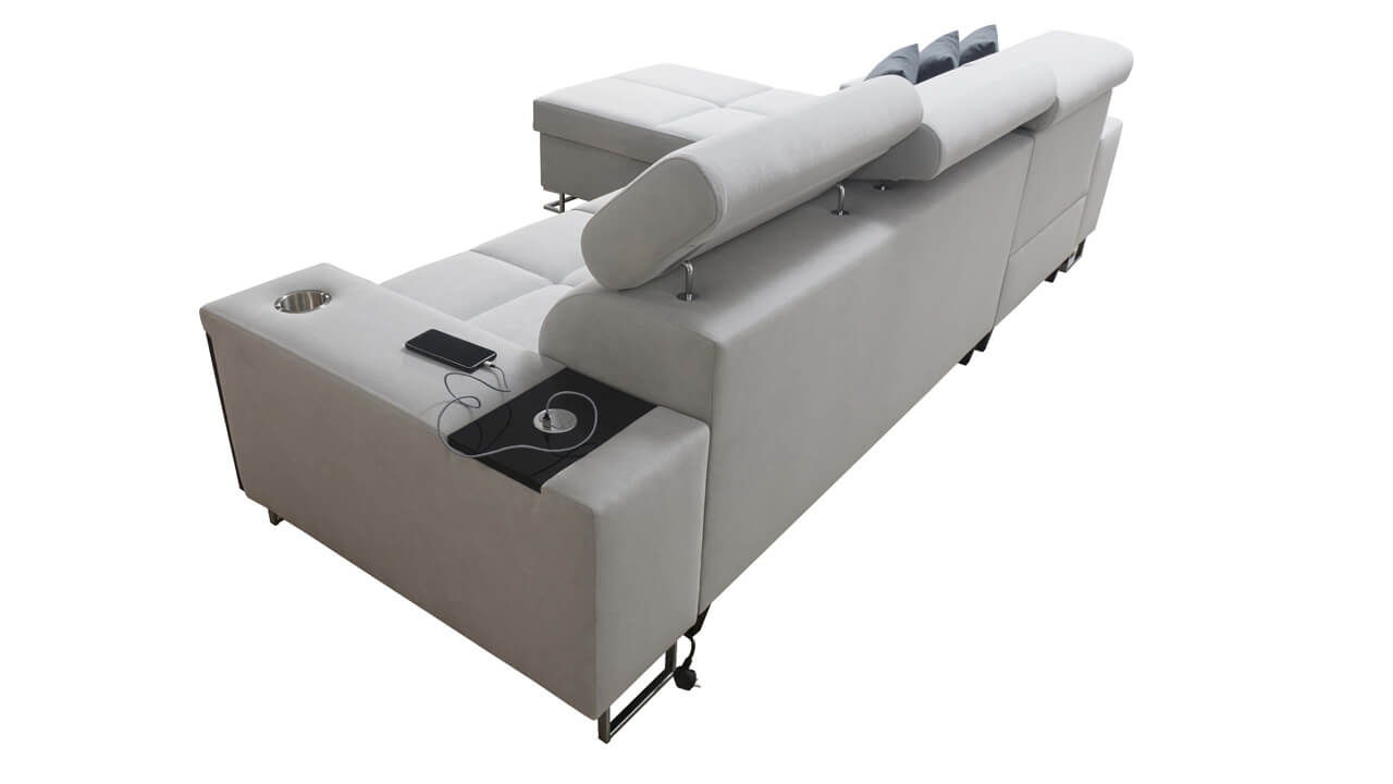 Rohovú sedačku s úložným priestorom Murena I Maxi si môžete prispôsobiť svojim požiadavkám. Typ látky, farbu aj dizajn doplnkov si navrhnete tak, aby sa vám do obývačky skvelo hodila. Okrem ladiaceho dizajnu na nej oceníte aj praktické funkcie ako je vstavaný minibar, opierky hlavy či vstavaná nabíjacia stanica so zásuvkou a USB.