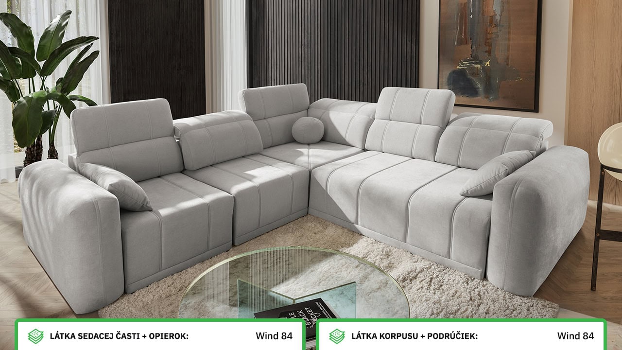 V našom konfigurátore si veľmi jednoducho nadizajnujete vašu novú sedačku. Najprv vás čaká výber rohu, a potom si zvolíte požadovanú poťahovú látku sedacej časti a korpusu. V posledných krokoch si vyberáte vzor vankúšov, typ doplnkov a nožičiek. Celý konfigurátor je dostatočne prehľadný, aby ste si svoju novú sedaciu súpravu navrhli presne podľa vašich predstáv.