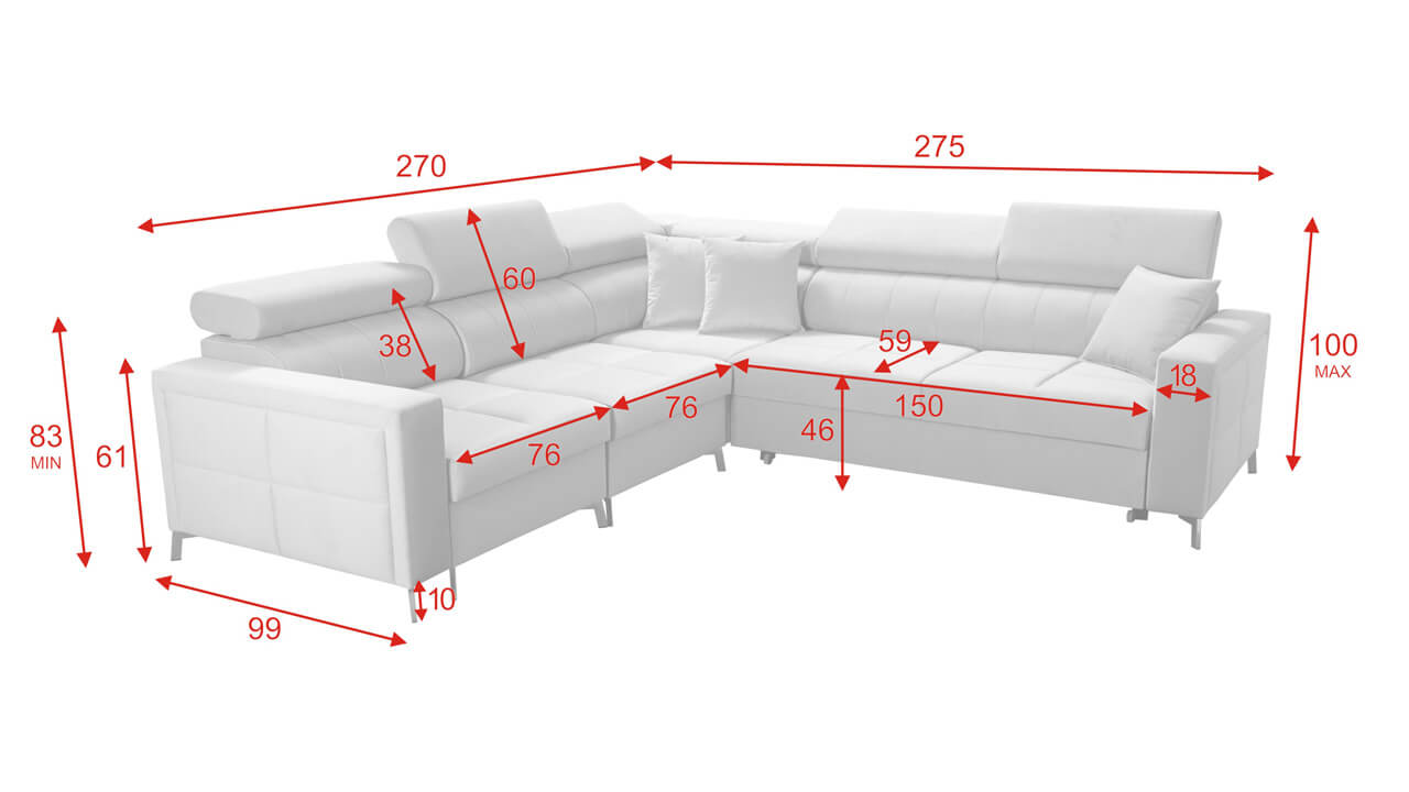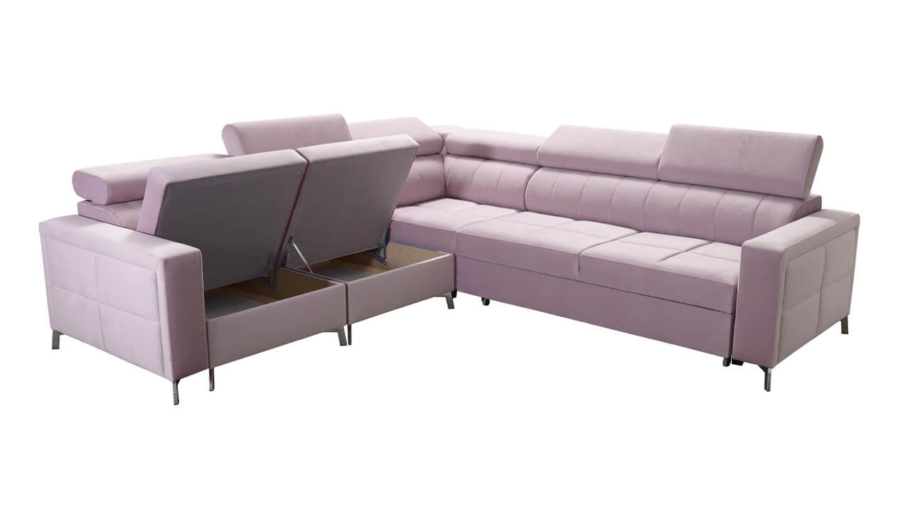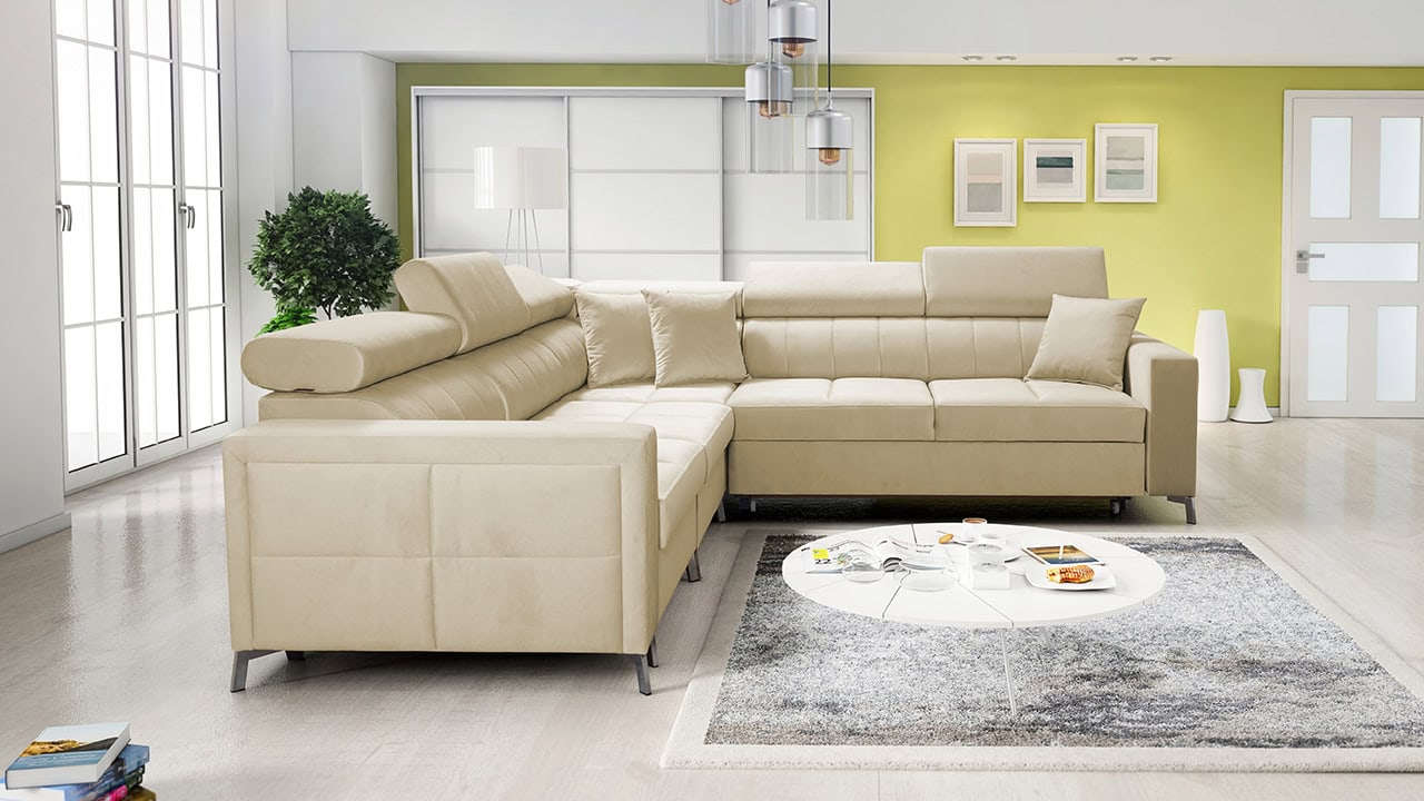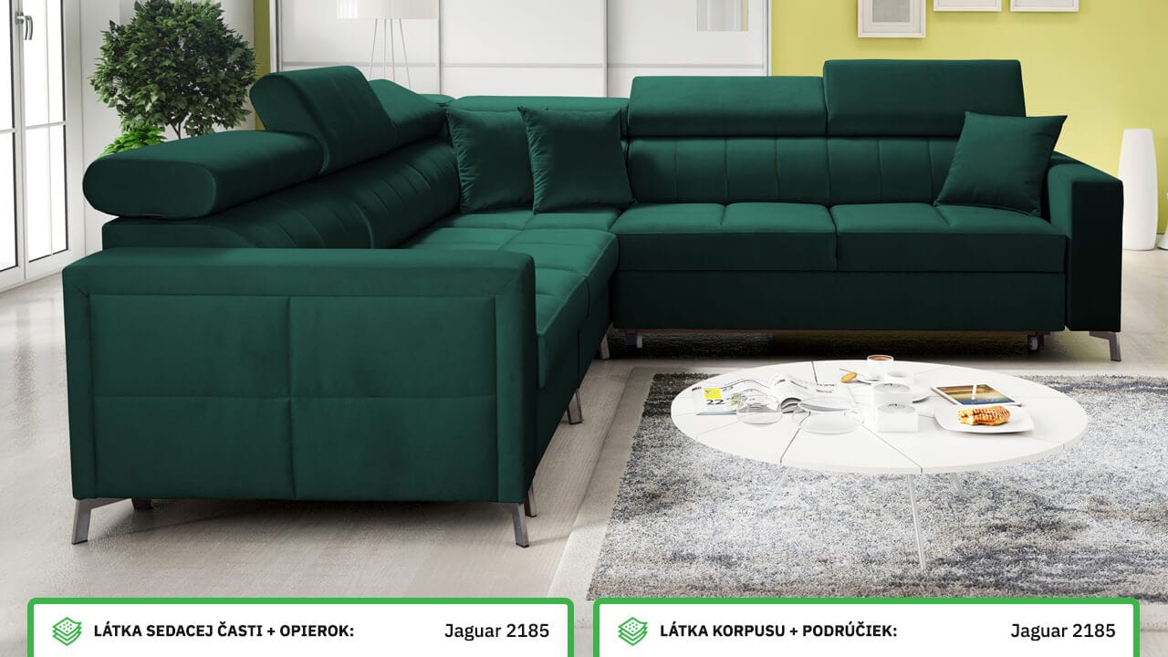 Moderná, pohodlná a kvalitná rohová sedačka, ktorá sa vďaka svojim rozmerom hodí aj do menších panelákových bytov. Má vstavané polohovateľné opierky hlavy, úložný priestor aj možnosť rozloženia. Výhodou tiež je, že typ a farbu poťahovej látky si na sedačku môžete nakombinovať podľa seba. Ľahko ju tak zladíte aj so starším nábytkom. Prezrite si vizualizácie a nechajte sa inšpirovať našimi návrhmi farebných prevedení.