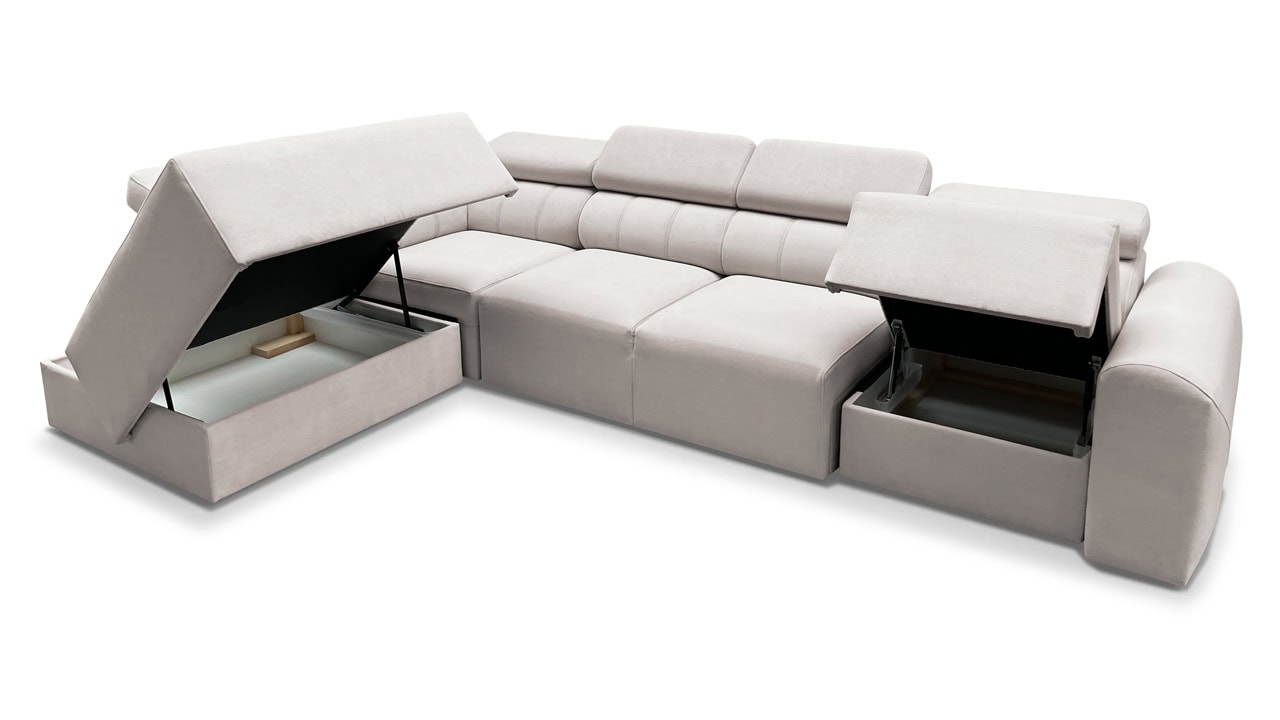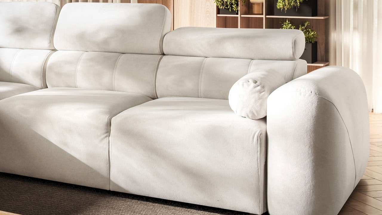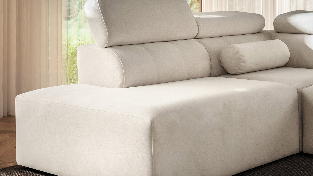 Minimalistická, elegantná a pohodlná – rohová sedačka Velar XI ponúka presne to, čo moderný interiér potrebuje. Hladké línie, nastaviteľné opierky hlavy a rozkladacia funkcia vytvoria ideálne miesto na relax, filmový večer aj príležitostné spanie. Chcete ešte viac komfortu? Za príplatok vám jeden úložný priestor vymeníme za elektrický výsuv na nohy. Stačí sa len posadiť, vyložiť si nohy a môžete oddychovať.