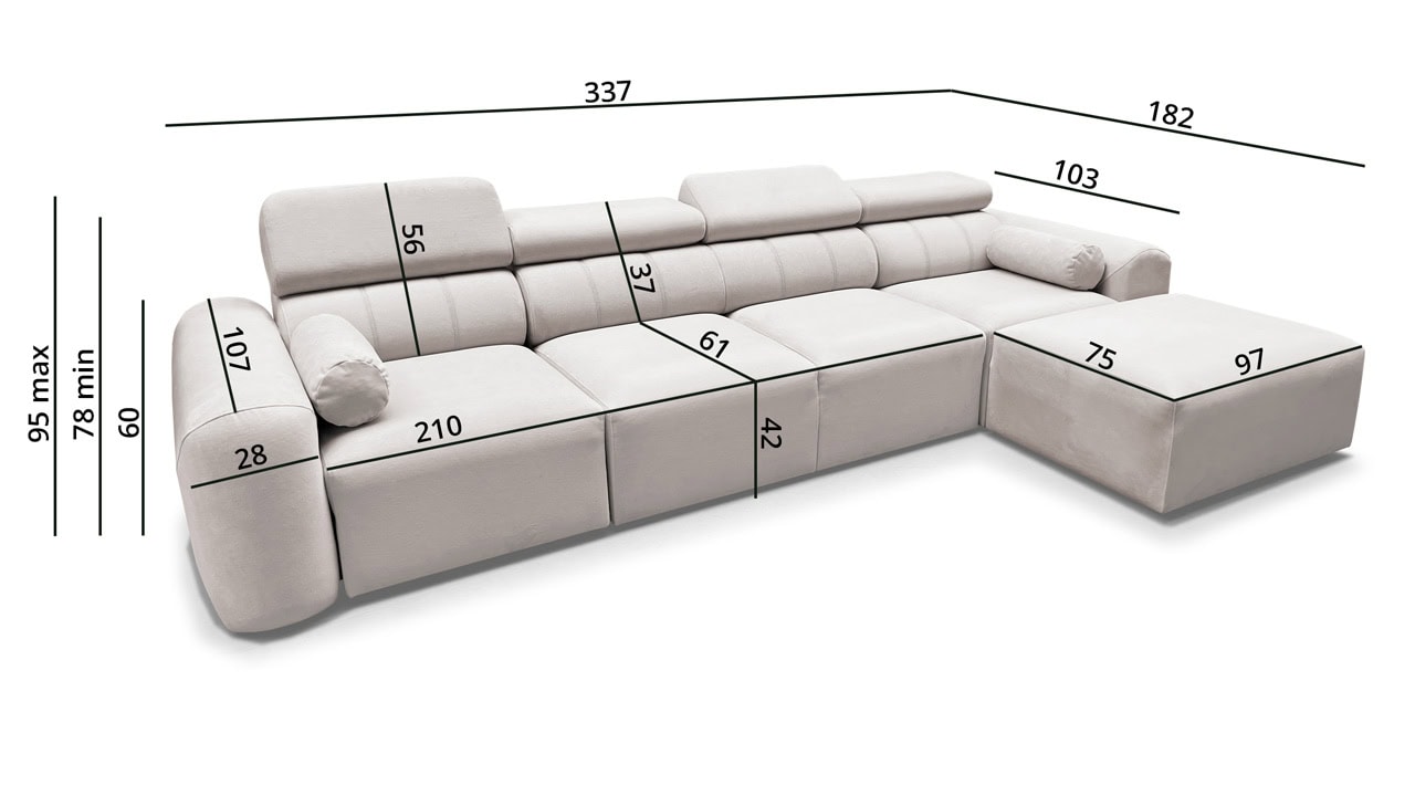 Rohová sedačka Velar XII spája funkčnosť a estetiku. Úložný priestor, rozkladacia funkcia a nastaviteľné opierky hlavy z nej robia ideálne riešenie do každodenného života – ako stvorené na oddych po dlhom dni v práci. Za príplatok je dostupný aj elektrický výsuv na nohy pre vaše maximálne pohodlie. Navyše, u nás nevyberáte sedačku podľa farby. Vyberte si ľubovoľný z našich poťahových materiálov a my vám ním sedačku potiahneme.