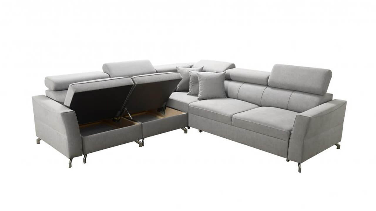Pohodlná rohová sedačka s úložným priestorom Vento IV sa vzhľadom na svoje väčšie rozmery môže popýšiť aj prijateľnou cenou. Poskytne dostatok miesta na sedenie väčšej rodine a po rozložení na nej možno príležitostne aj prespať. Disponuje nastaviteľnými opierkami hlavy a veľmi pevnou vnútornou konštrukciou.