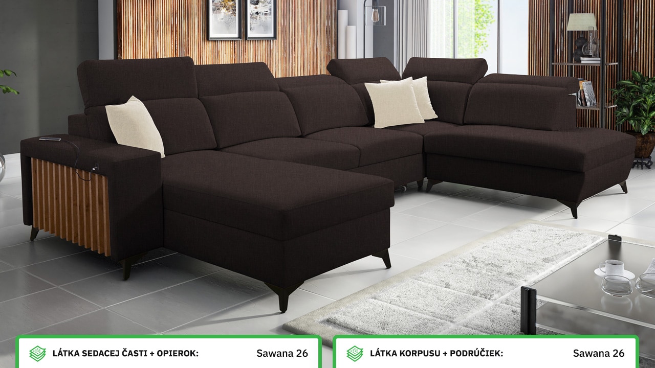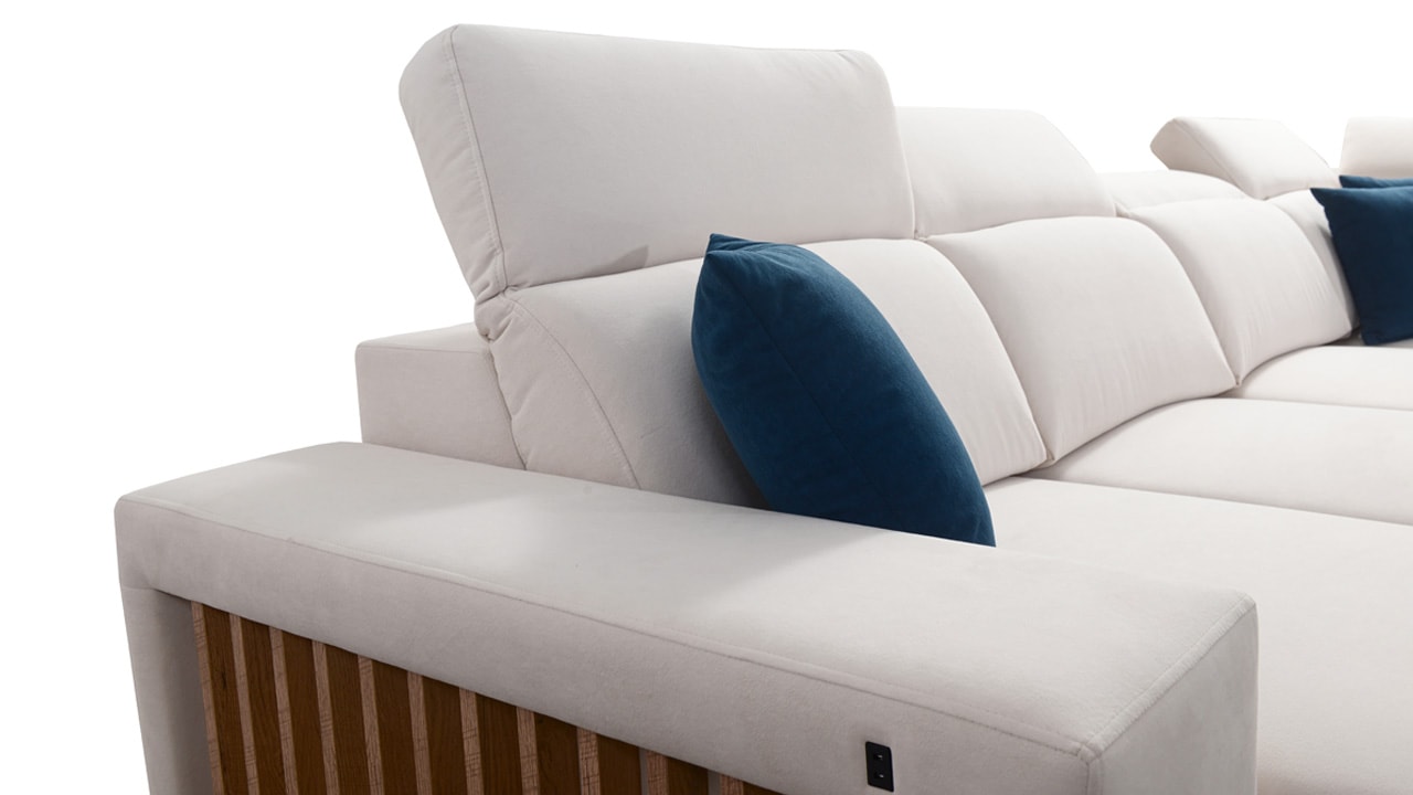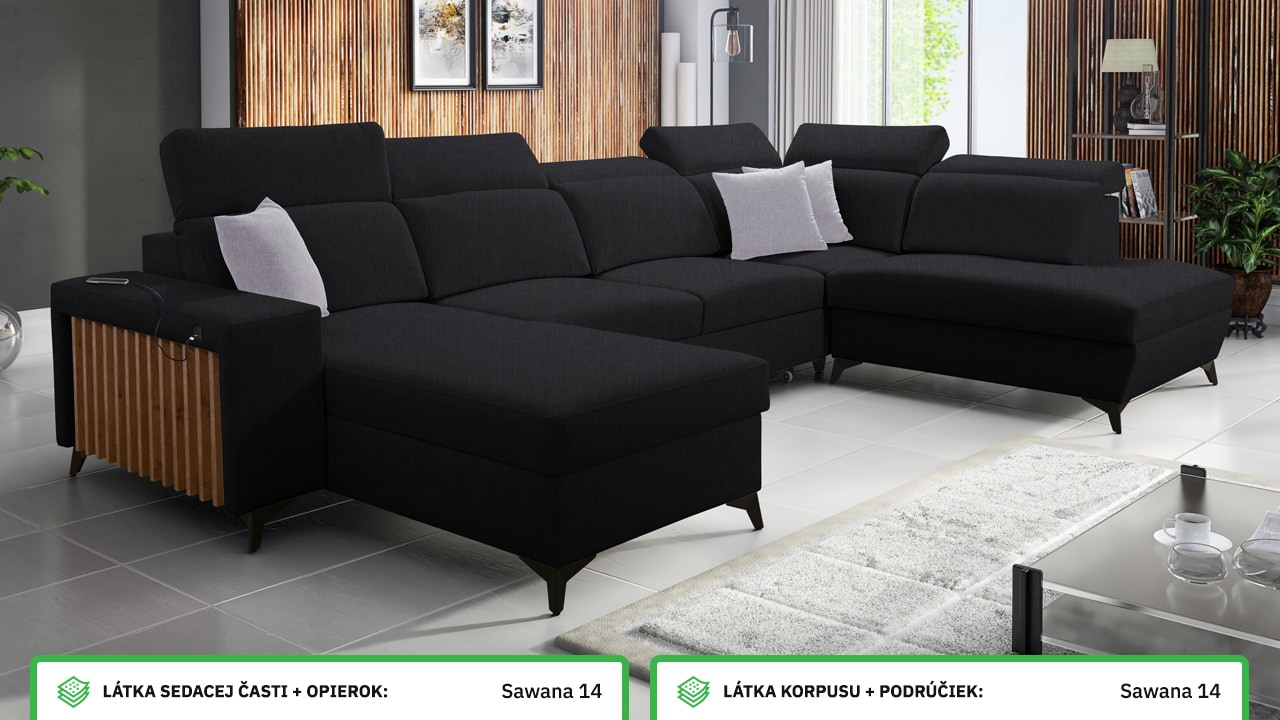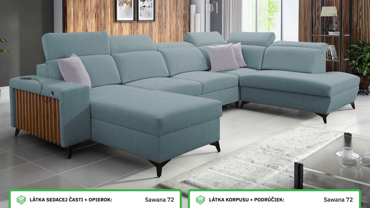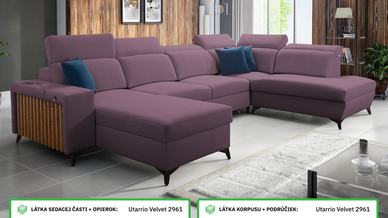 Neviete nájsť tú správnu sedaciu súpravu? Túžite po výraznej žiarivej farbe, alebo naopak po jemných zemitých odtieňoch? Túto sedačku si môžete nechať vyrobiť na mieru v akomkoľvek poťahu z nášho vzorkovníka. Dolaďte si k nej ešte zaujímavý dizajnový drevený prvok a potom si už len sadnite a zrelaxujte. Pomôže vám v tom pohodlné sedenie, polohovateľné opierky hlavy aj vstavané USB porty na nabitie mobilu či tabletu.