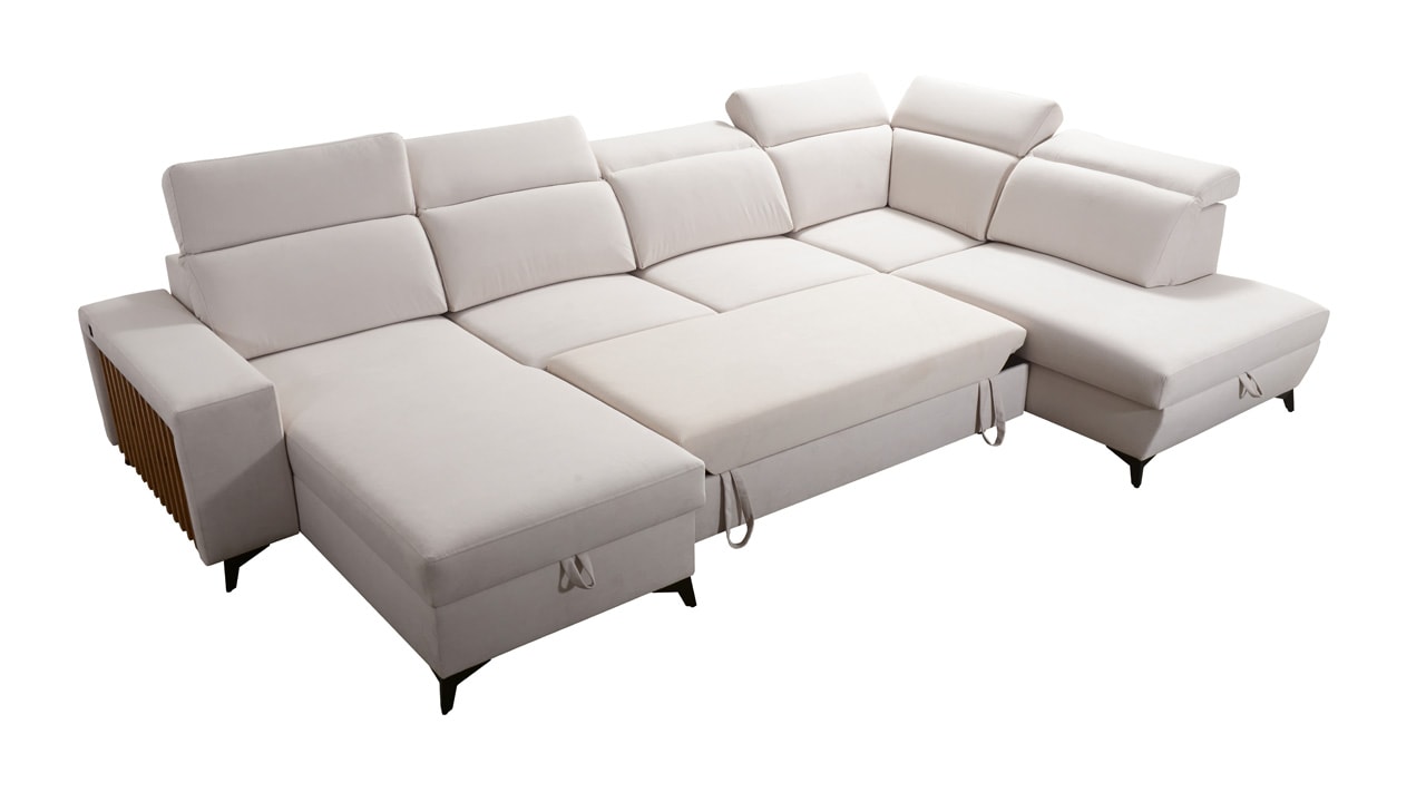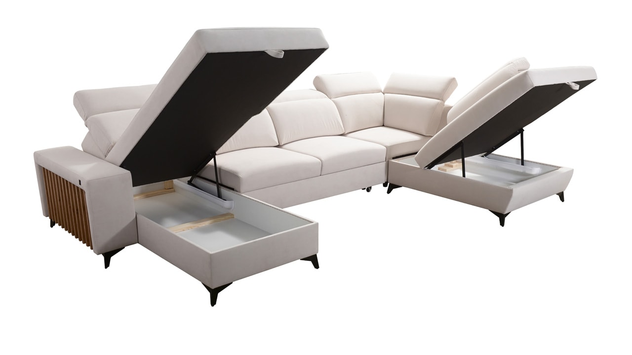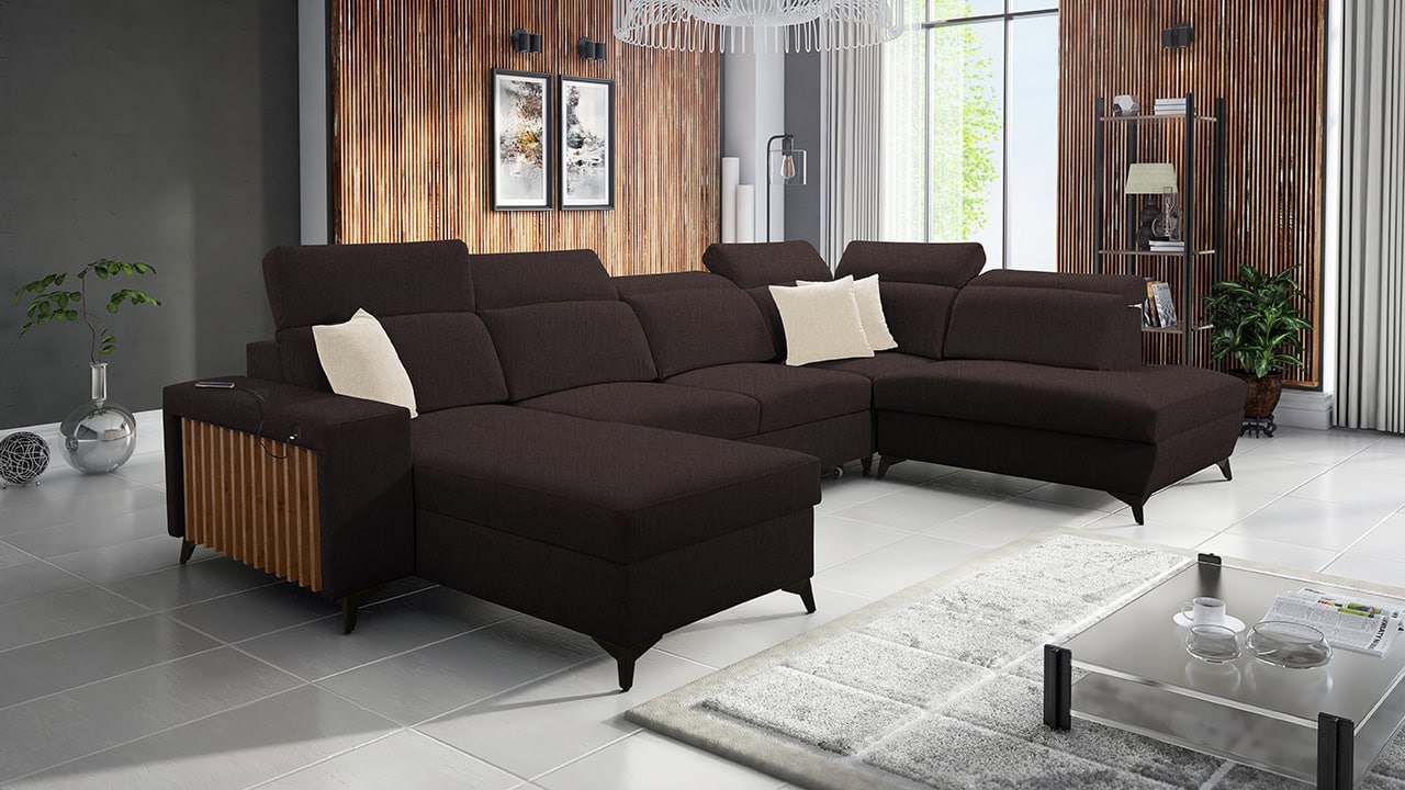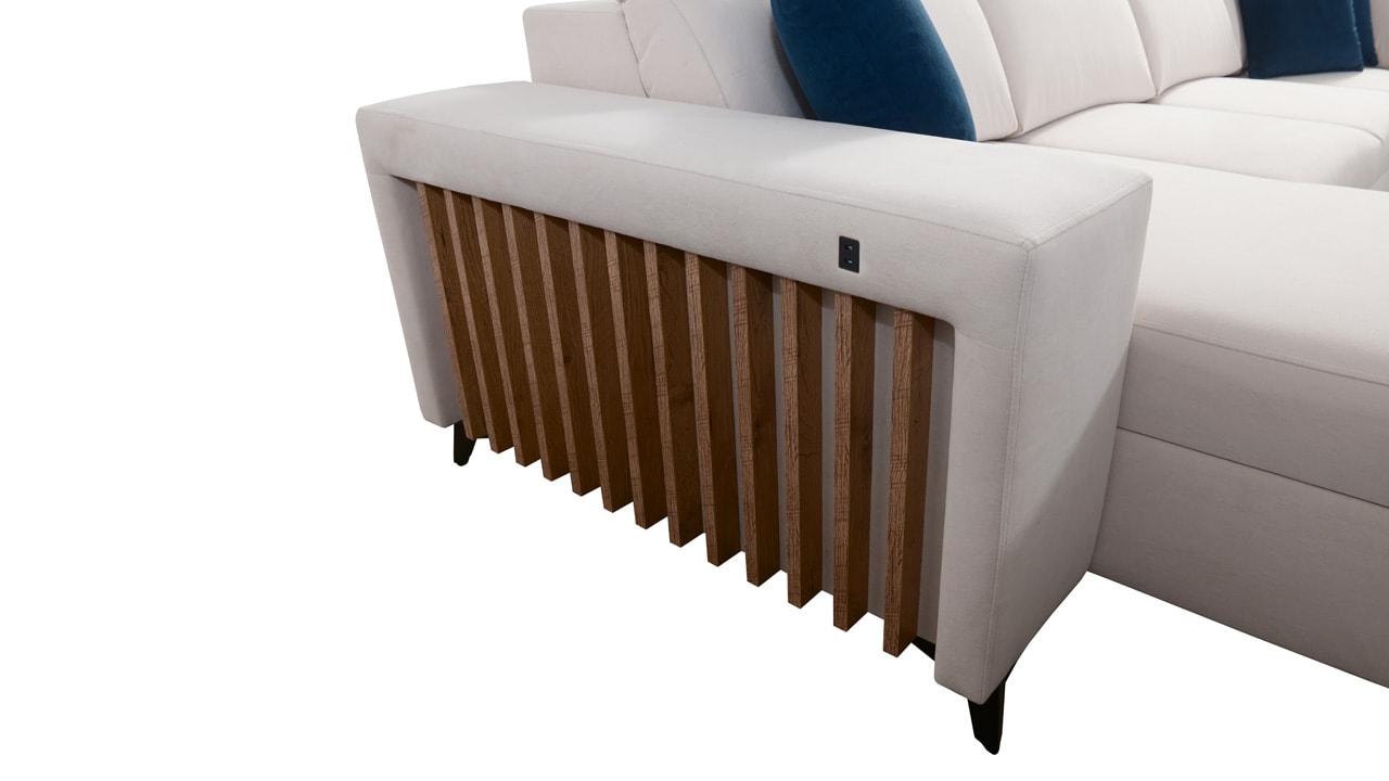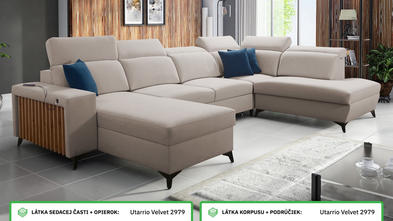 Neviete nájsť tú správnu sedaciu súpravu? Túžite po výraznej žiarivej farbe, alebo naopak po jemných zemitých odtieňoch? Túto sedačku si môžete nechať vyrobiť na mieru v akomkoľvek poťahu z nášho vzorkovníka. Dolaďte si k nej ešte zaujímavý dizajnový drevený prvok a potom si už len sadnite a zrelaxujte. Pomôže vám v tom pohodlné sedenie, polohovateľné opierky hlavy aj vstavané USB porty na nabitie mobilu či tabletu.