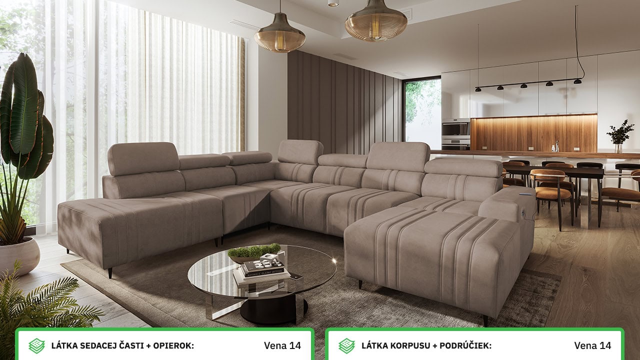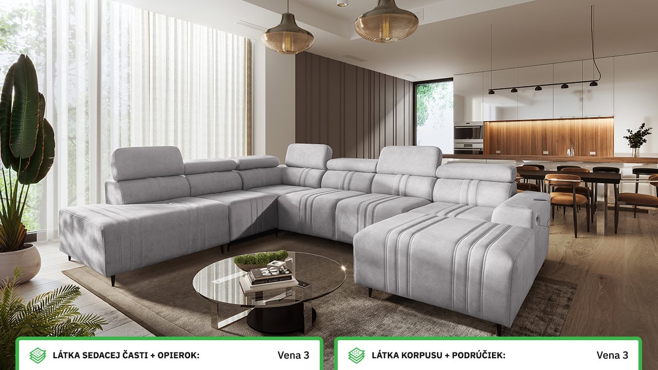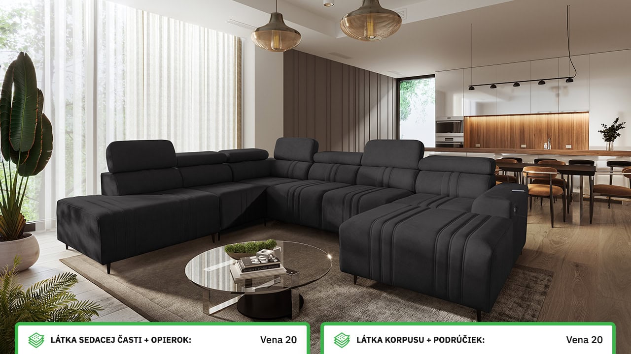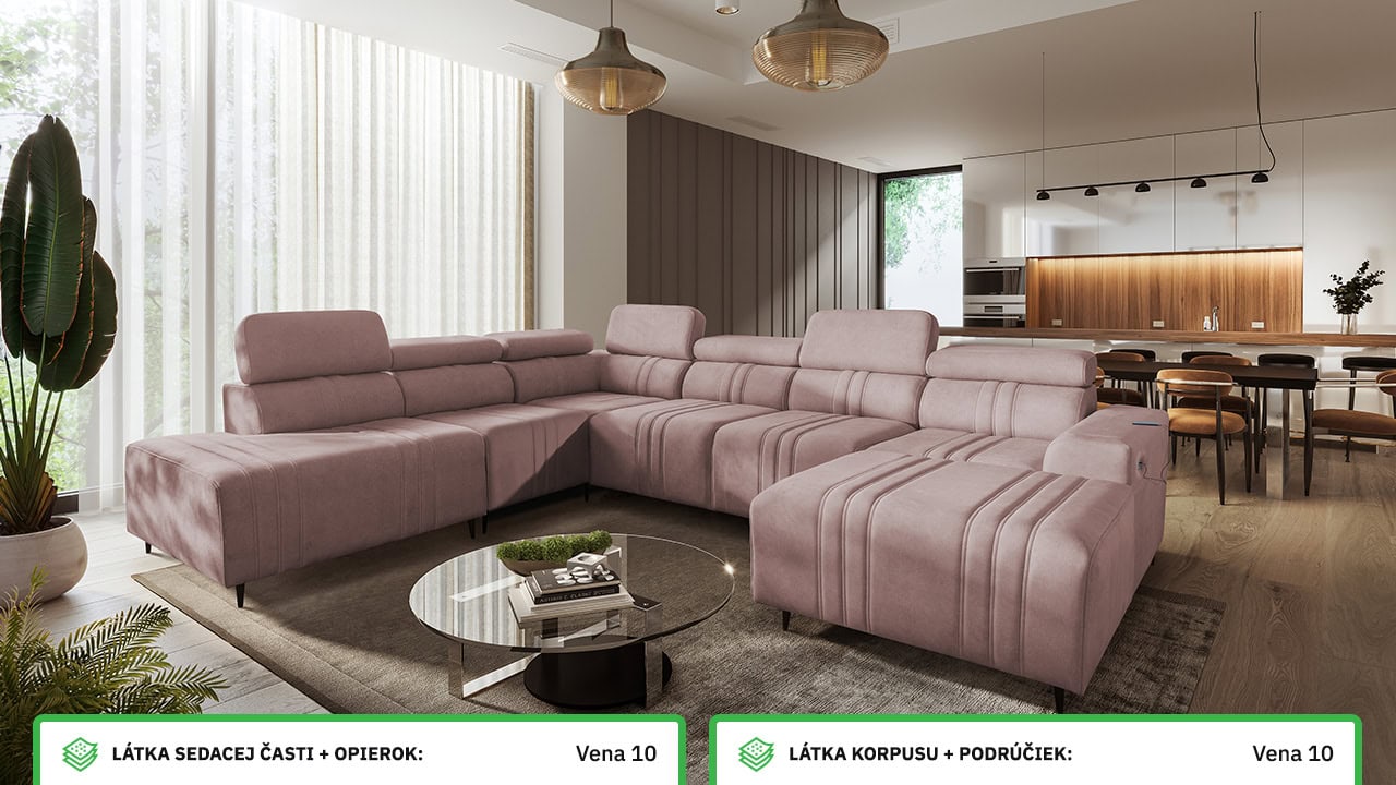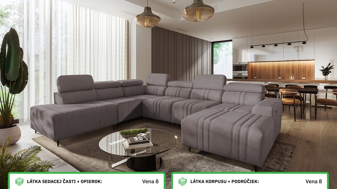 Veľká sedačka poskytne miesto pre celú vašu rodinu. Ak sa navyše rozhodnete pre u-čkovú sedačku Fabio X, získate oveľa viac. Okrem komfortného sedenia a polohovateľných opierok hlavy vám totiž do domova prinesie nádych luxusu a elegancie. Má krásne línie a zaujímavé šitie, vďaka čomu ulahodí aj tým najnáročnejším zákazníkom. Po rozložení poskytne dostatok miesta pre uloženie návštevy a úložný priestor hravo uloží sezónne veci. V prípade záujmu vám menší úložný priestor nahradíme vysúvateľnou podnožkou a vy si tak budete môcť vychutnať komfort ešte na vyššej úrovni.