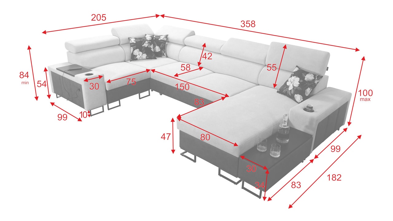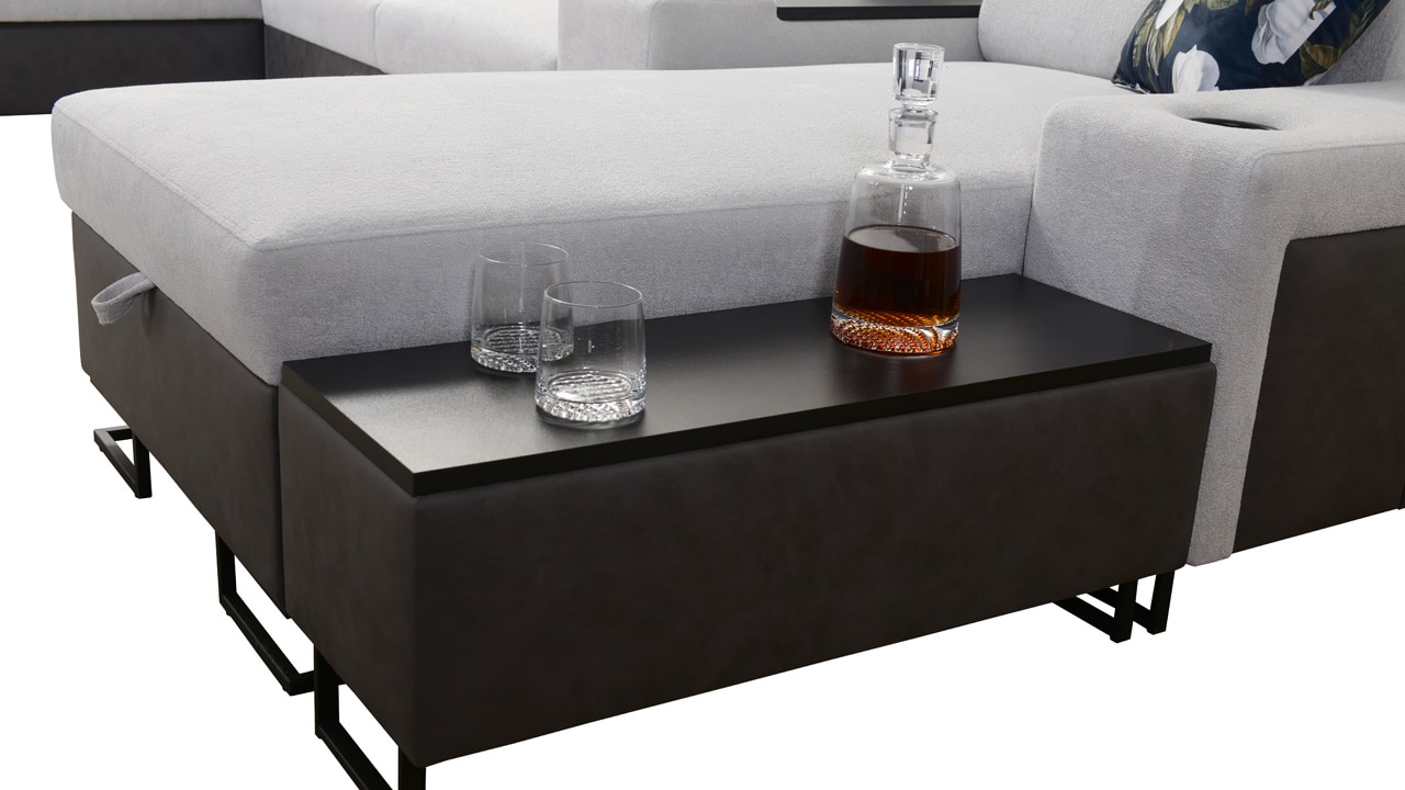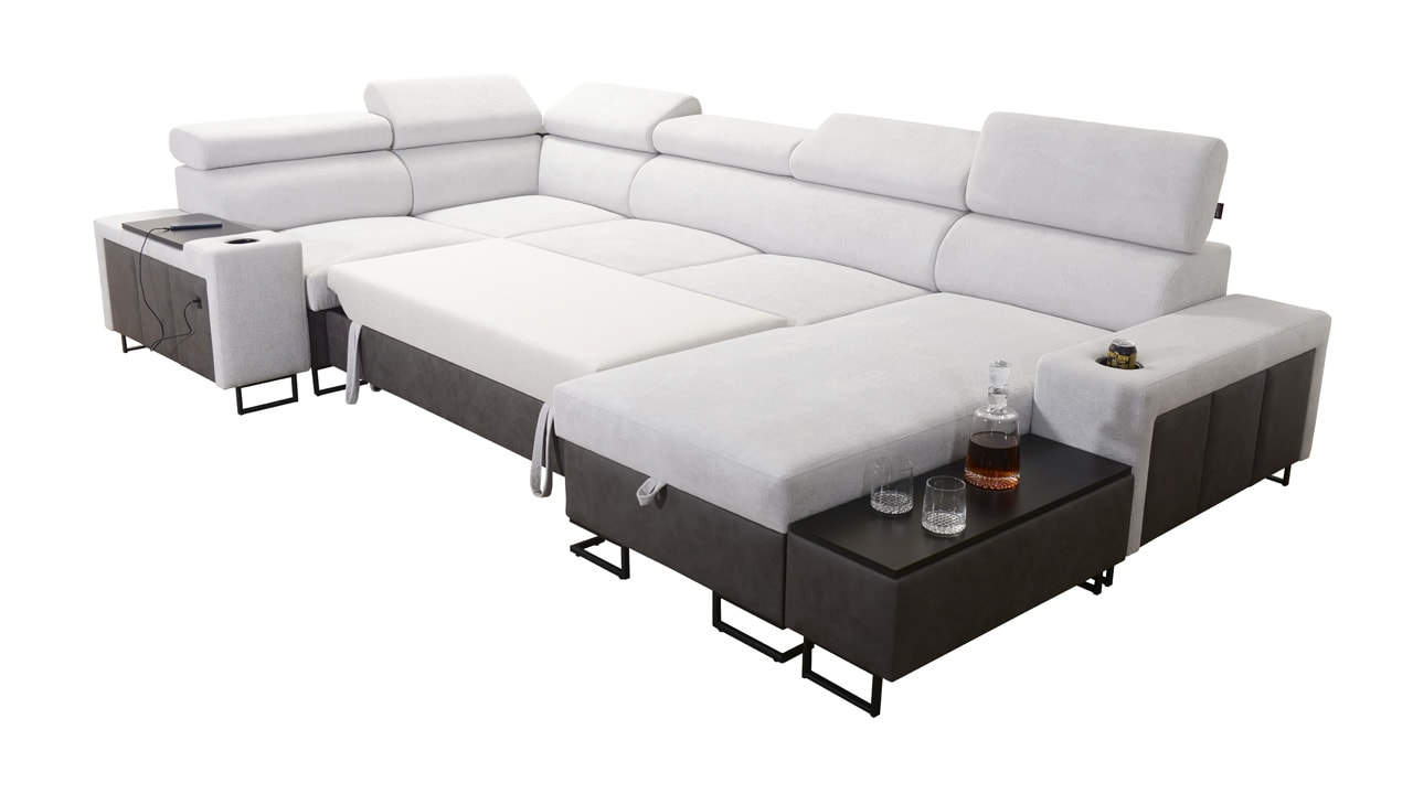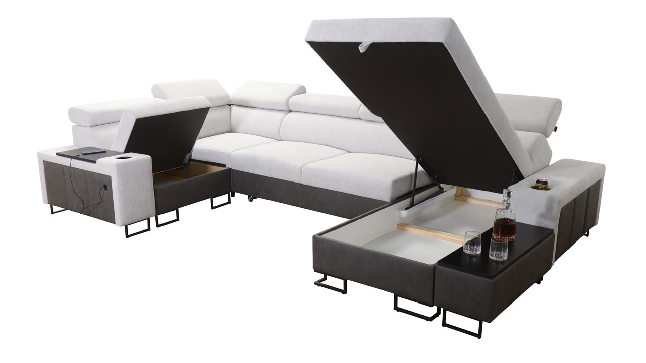 Nadčasový dizajn, bezpodmienečná kvalita a praktická funkčnosť – tieto 3 vlastnosti najlepšie charakterizujú U sedaciu súpravu MELODIA IV MAXI. Je vyrobená z odolných materiálov, zaručuje dlhú životnosť a elegantný vzhľad. Disponuje polohovateľnými opierkami hlavy, veľkým úložným priestorom, vstavaným minibarom, držiakmi na poháre, zabudovanou USB nabíjačkou a možnosťou rozloženia.