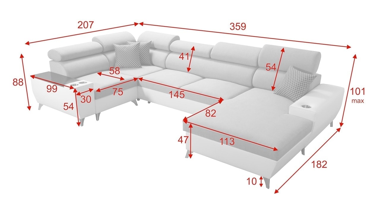 • Vašu novú sedačku si môžete rozšíriť za zvýhodnenú cenu o doplnky ako sú vankúše navyše, kávový stolík alebo matrac. Cena výnosu sedacej súpravy vám bude vypočítaná individuálne podľa vašich požiadaviek.