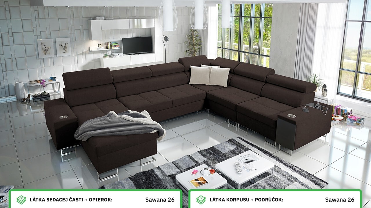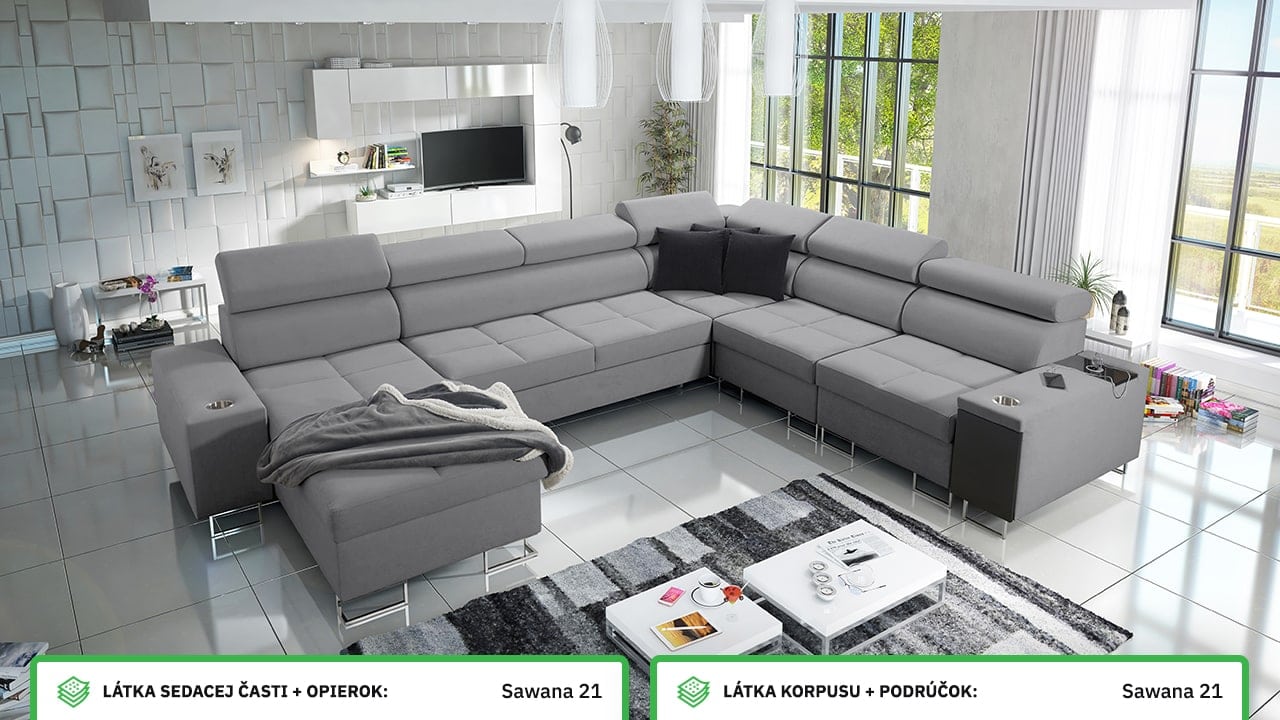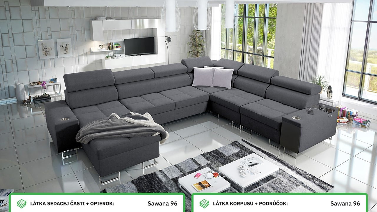 Na tejto naozaj priestrannej účkovej sedačke pohodlne usadíte celú rodinu či väčšiu návštevu. Má kvalitnú konštrukciu, ktorá udrží aj vyššie váhy a zabezpečí, aby sa sedačka ani po rokoch nevysedela. Ku skutočnému komfortu vám poslúžia polohovateľné opierky hlavy, vstavaný minibar, držiaky na poháre a zabudovaná nabíjacia stanica.