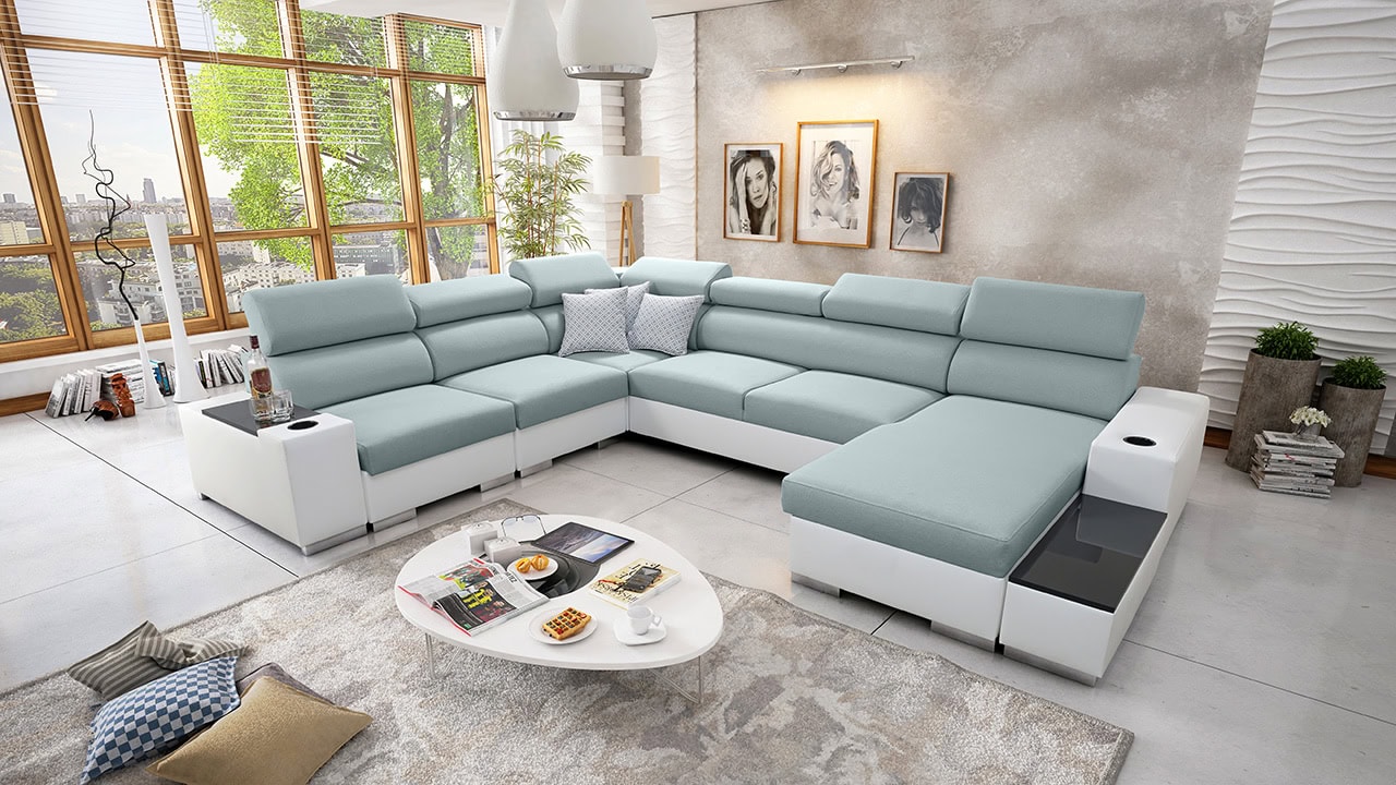 Exkluzívny model veľkej sedačky v tvare U prinesie svojim budúcim majiteľom predovšetkým veľký komfort. Sedačka je kvalitná, má nastaviteľné opierky hlavy, držiaky na poháre a zabudovaný minibar, takže budete mať všetko hneď po ruke.