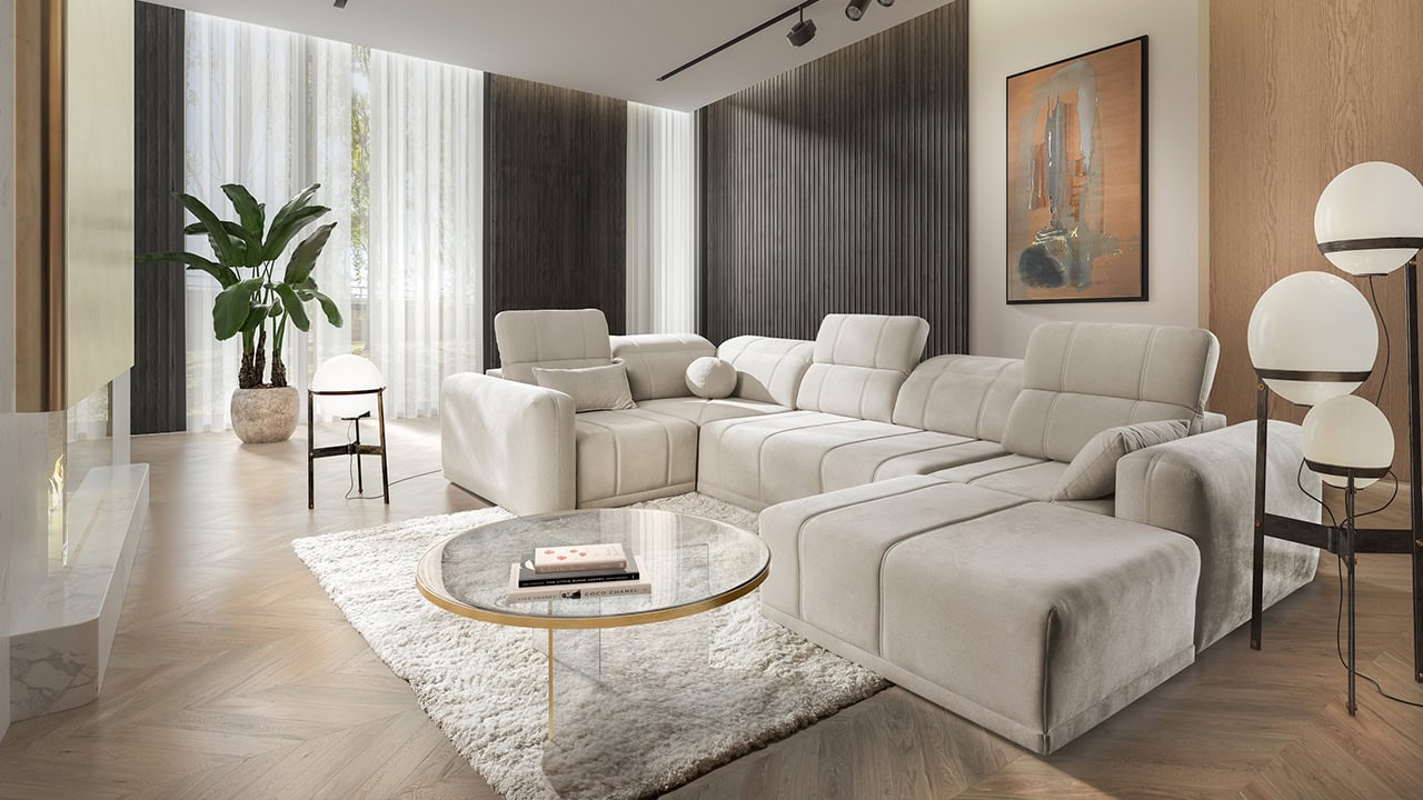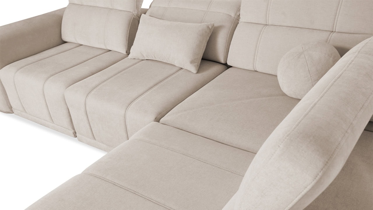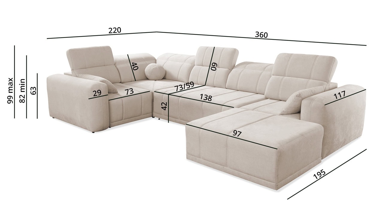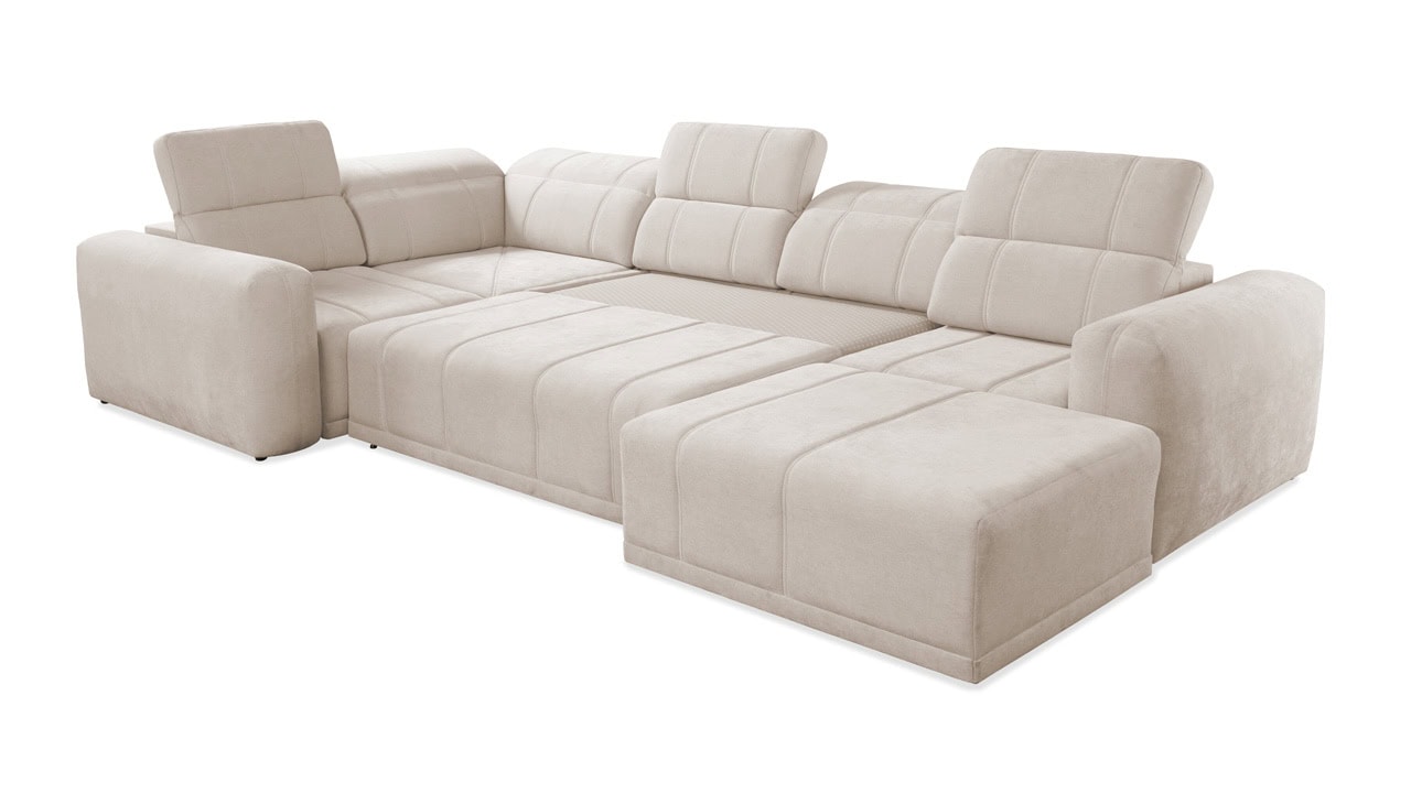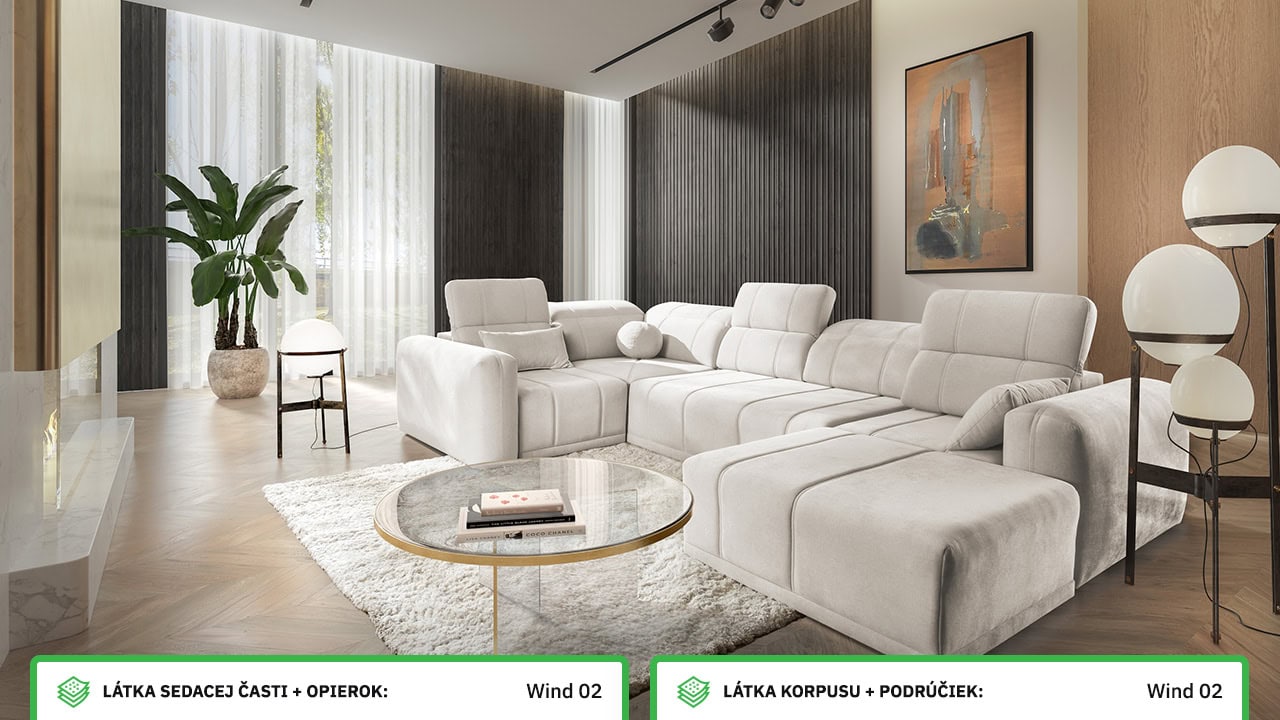 Vytvorte si v obývačke priestor na zábavu a oddych s našou sedačkou v tvare U. Sedačka je vyrobená z kvalitných materiálov a ponúkne vám praktický úložný priestor či možnosť rozkladania. Pohodlie pri sedení zvyšuje posúvateľná opierka chrbta a polohovateľné opierky hlavy. Na pohľad vás očarí vás zaujímavým detailom šitia i moderným dizajnom. Strávite na nej príjemné chvíle s rodinou či priateľmi pri filme, rozhovore alebo spoločenských hrách.