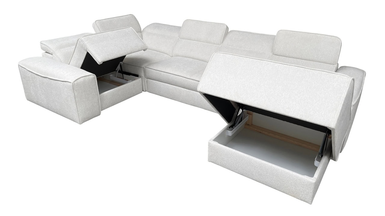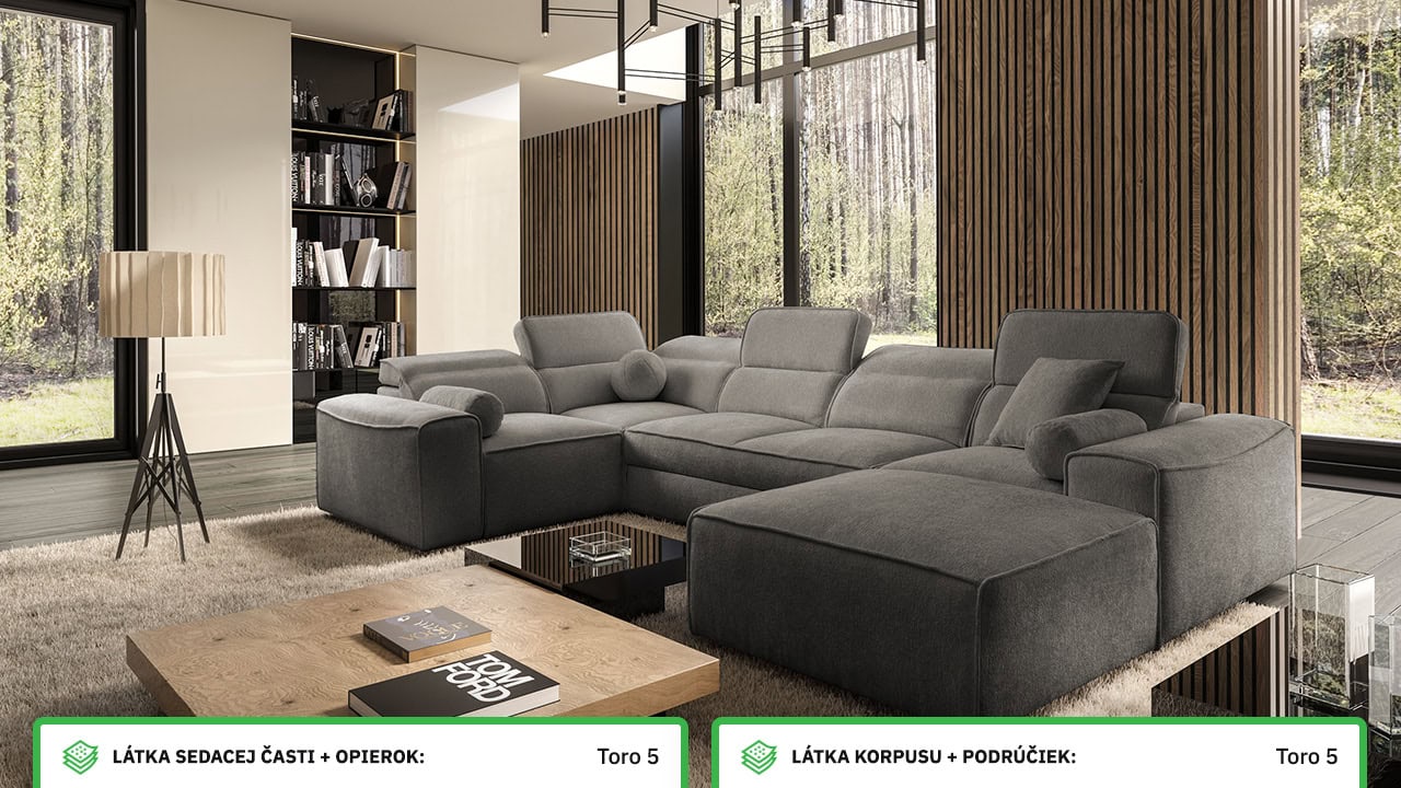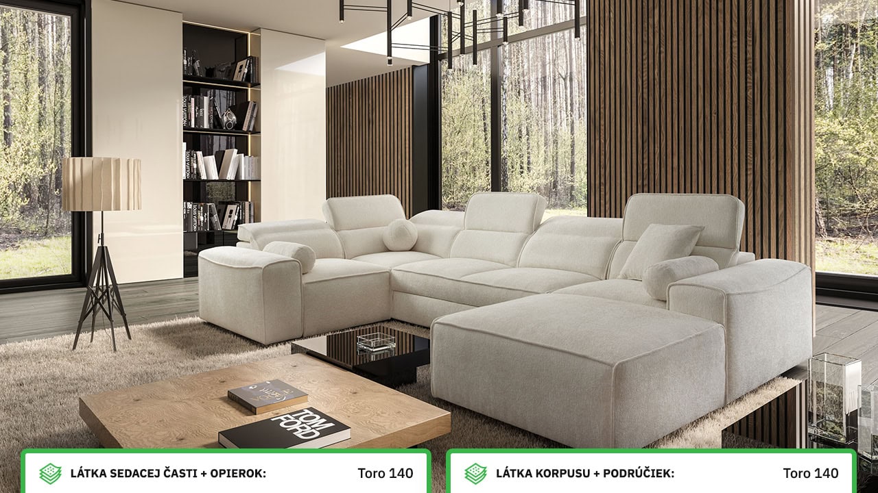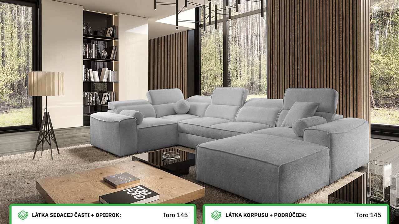 Chcete sedačku, ktorá bude ozdobou vášho interiéru a súčasne vám ponúkne dokonalé miesto na oddych či posedenie s rodinou? U-čková sedacia súprava Vitton IV je presne to, čo hľadáte. Extra miesto na leňošenie vám ponúka priestranné chaise-end krídlo. Pohodlie zvýšite polohovateľnými opierkami, prípadne si miesto jedného úložného priestoru môžete nechať za príplatok pridať elektrický výsuv na nohy. Vyberte si ľubovoľný poťah z našej ponuky a my vám ním sedačku potiahneme.
